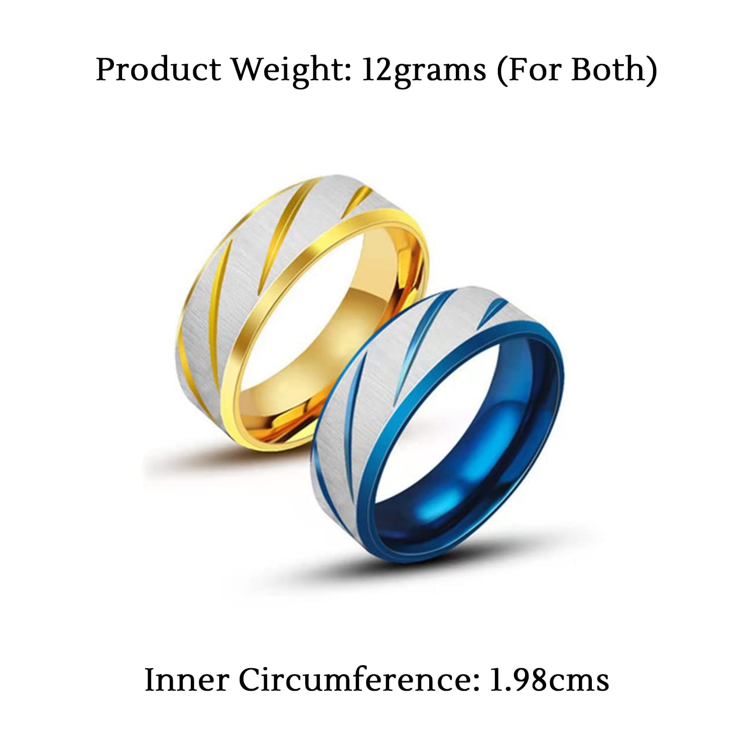 Yellow Chimes Rings for Men 2 Pcs Combo Rings Stainless Steel Rings Blue Gold Textured Band Rings for Men and Boy's. Combo 2 Pcs Classic, Weighty and Durable, excellent scratch resistant performance. PLATING - IPS process of plating makes it never fading of color, and keeps the shine PREMIUM QUALITY: Pure surgical stainless steel is used to make this product, which doesnt cause any harm to skin. Nickel free and Lead free as per International Standards. No harm to health Best suitable for Men.Size is US 9, which in 19.0 mm Diameter . GIFT FOR HIM! - Ideal Valentine, Birthday, Anniversary gift for someone you ? LOVE ?. With our packaging Box, you do not need to opt-in for any additional gift packaging. The product comes in a beautiful Elegant Ready-to-Gift Box.