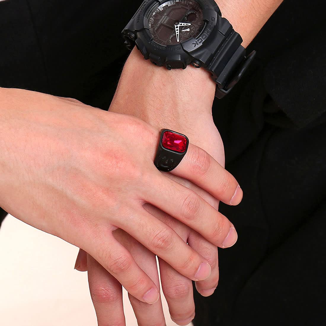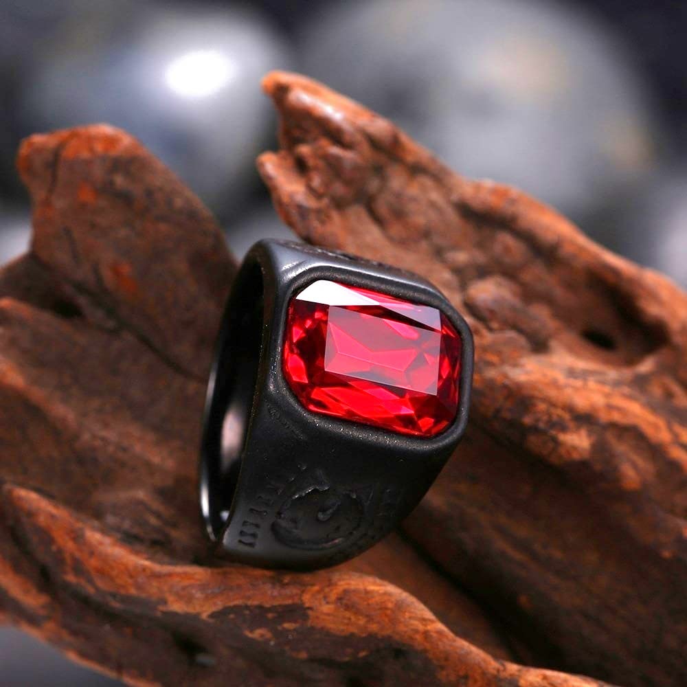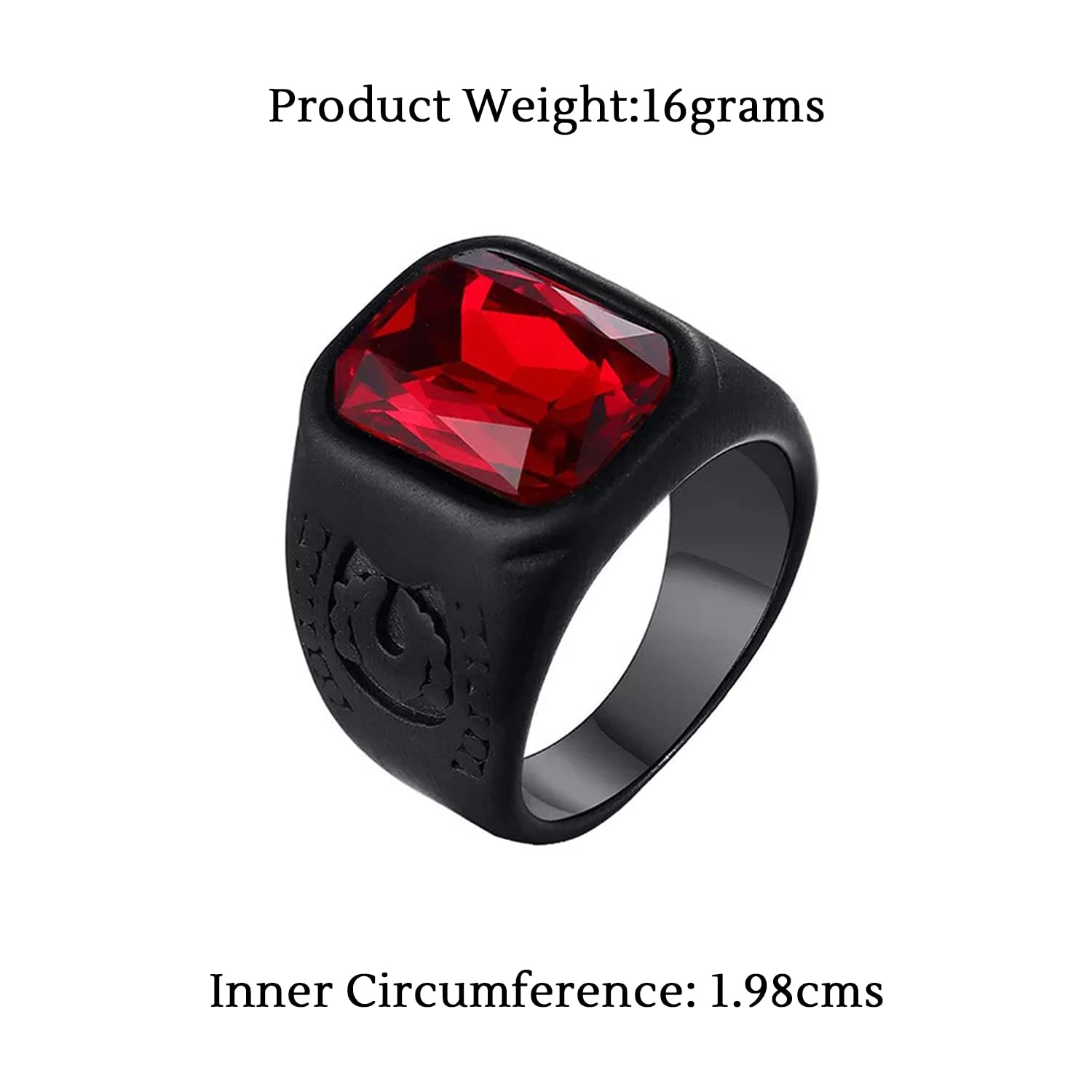 - Trendy and Adorable Stainless Steel Black Colored Red Crystal Stone Studded Ring for Men. Our Product is perfect for valentines Anniversary Birthday gift for Husband and Boyfriend.