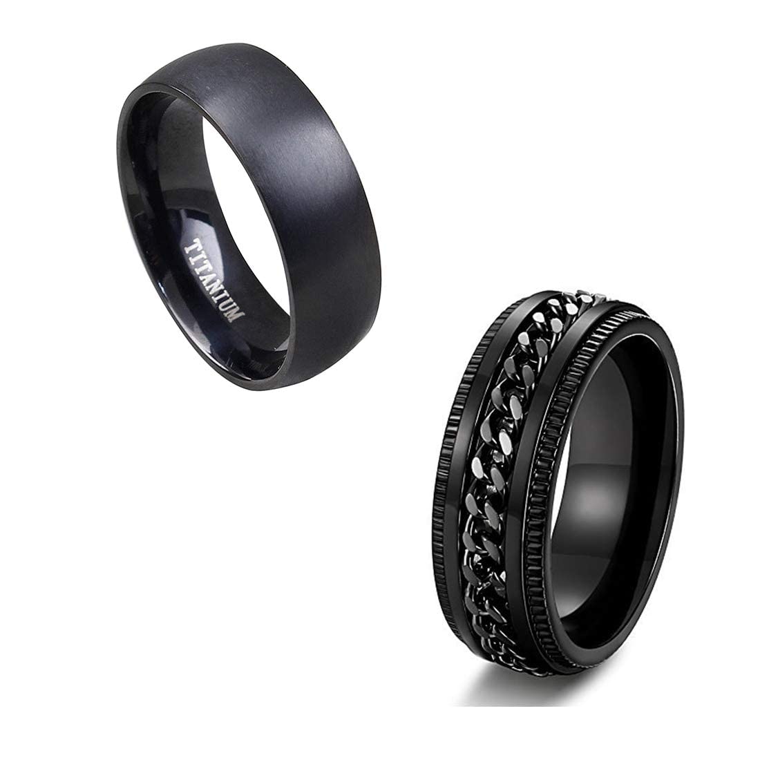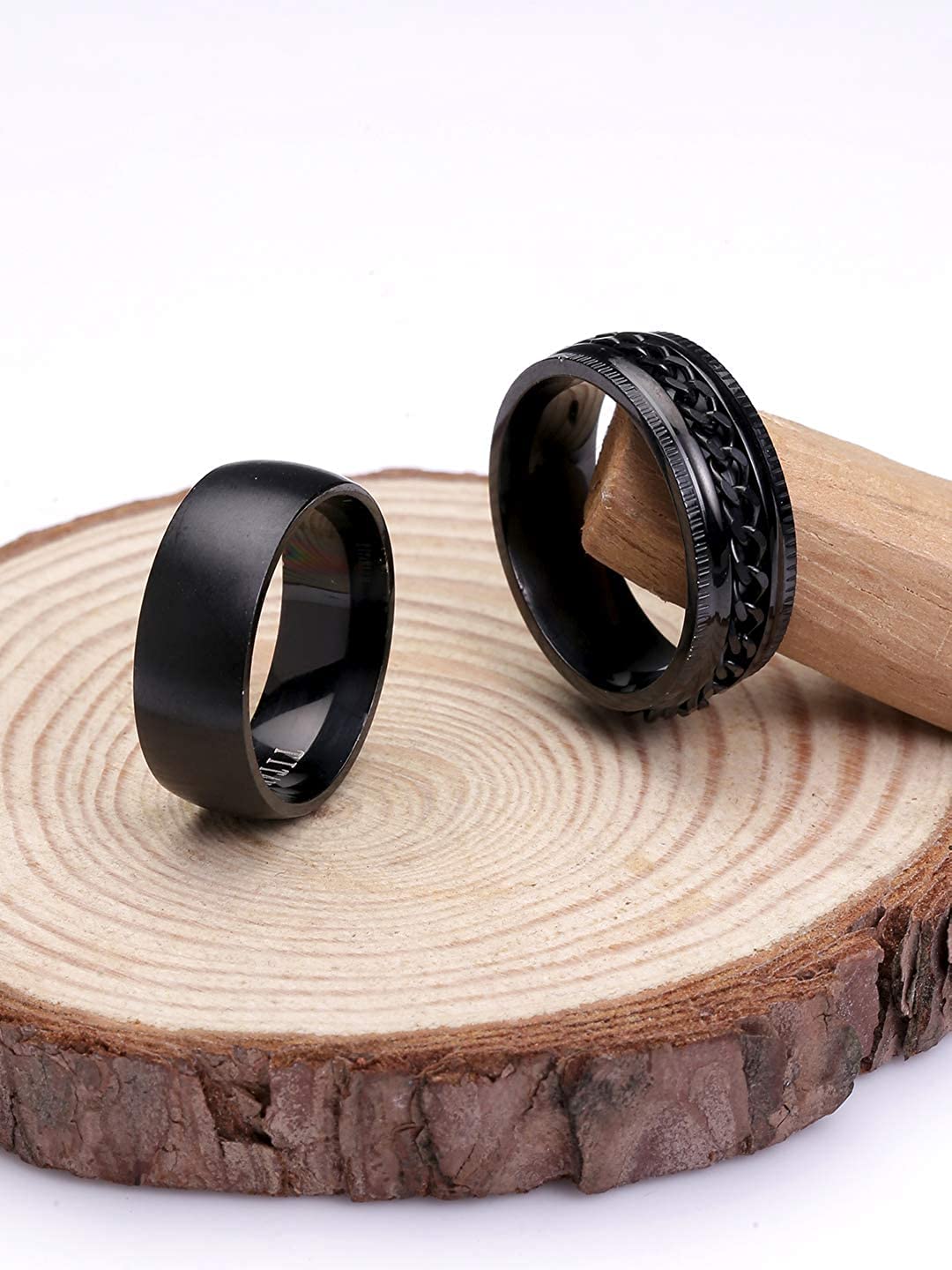 - Combo 2 Pcs Black Colored Stainless Steel Smooth Finished Band Designed Ring Set for Men. Our Product is perfect for valentines Anniversary Birthday gift for Husband and Boyfriend.