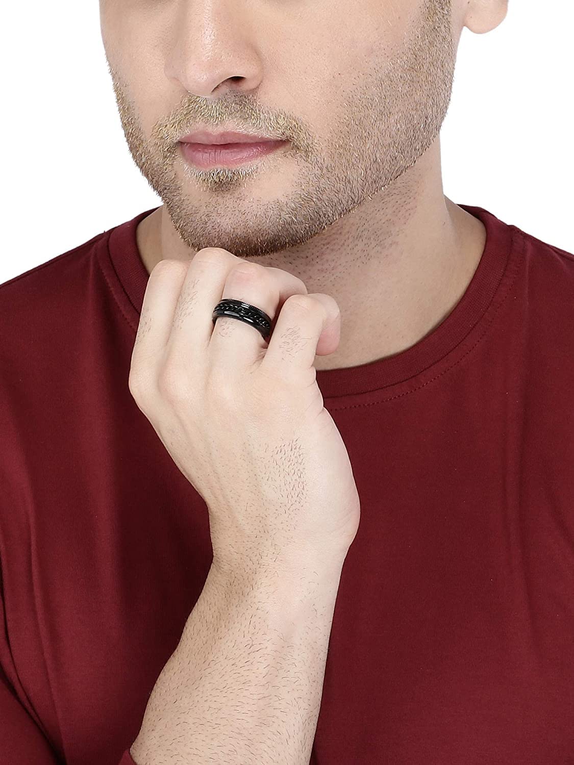 Rings for Men and Boys | Black Ring Set for Men | Band Shaped Men's Ring Combo | Stainless Steel Rings for Men | Accessories Jewellery for Men | Birthday Gift for Men and Boys Anniversary Gift for Husband (Size US 11)