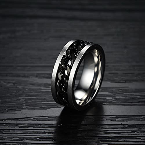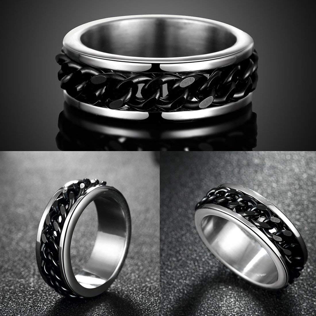 - Simple and Smooth Finished Silver toned Black chain Inter linked Designed band Ring for Men. Our Product is perfect for valentines Anniversary Birthday gift for Husband and Boyfriend.