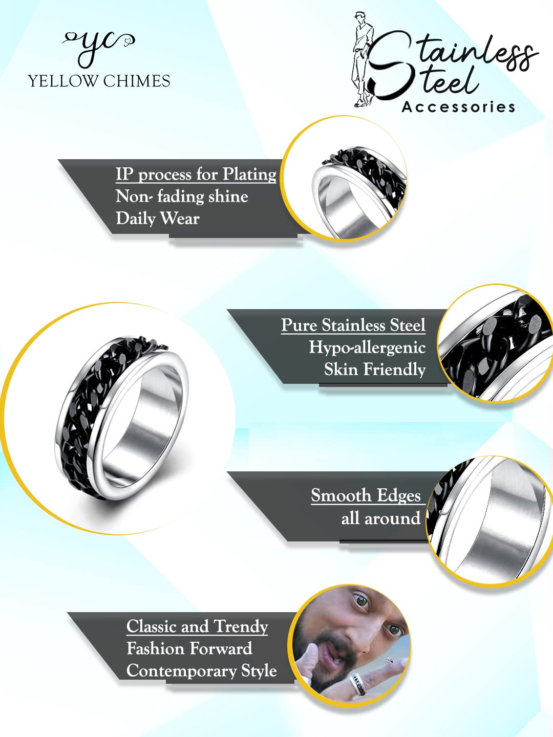 Yellow Chimes Rings for Men and Boys | Silver Rings for Men | Band Black chain Inter linked Finger Men's Ring | Stainless Steel Rings for Men | Accessories Jewellery for Women | Birthday Gift for Men and Boys Anniversary Gift for Husband (Size US 11)