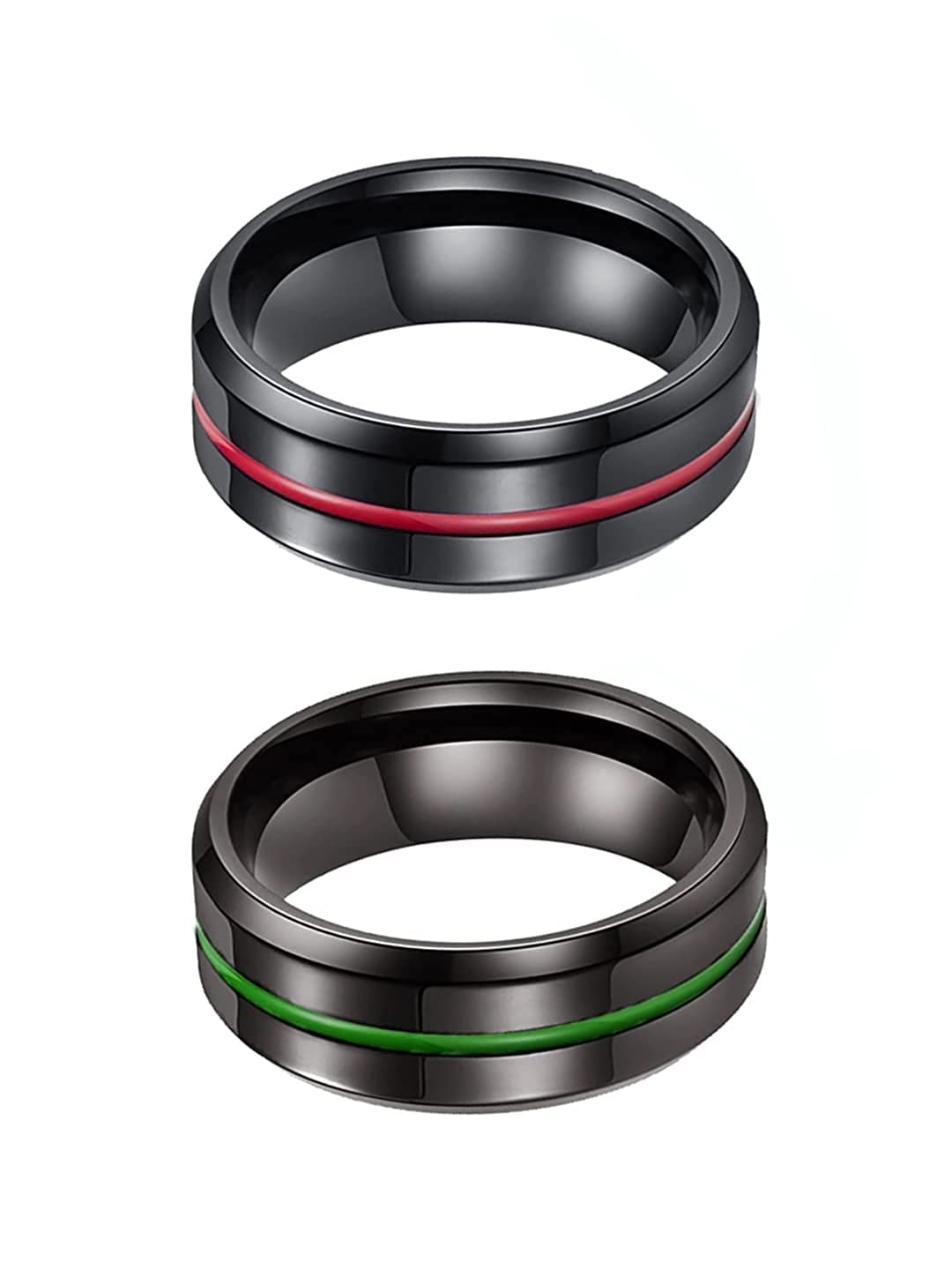 Yellow Chimes Rings for Men Combo of 2 Pcs Stainless Steel Rings Black Toned Grooved Center Band Rings for Men and Boys