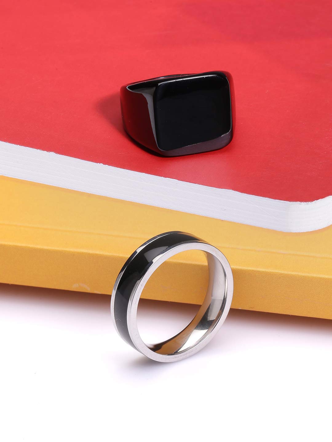 Yellow Chimes Rings for Men Combo of 2 PCS Ring Rock Cool Casual Sport Noble Black Band Stainless Steel Rings for Men and Boys.