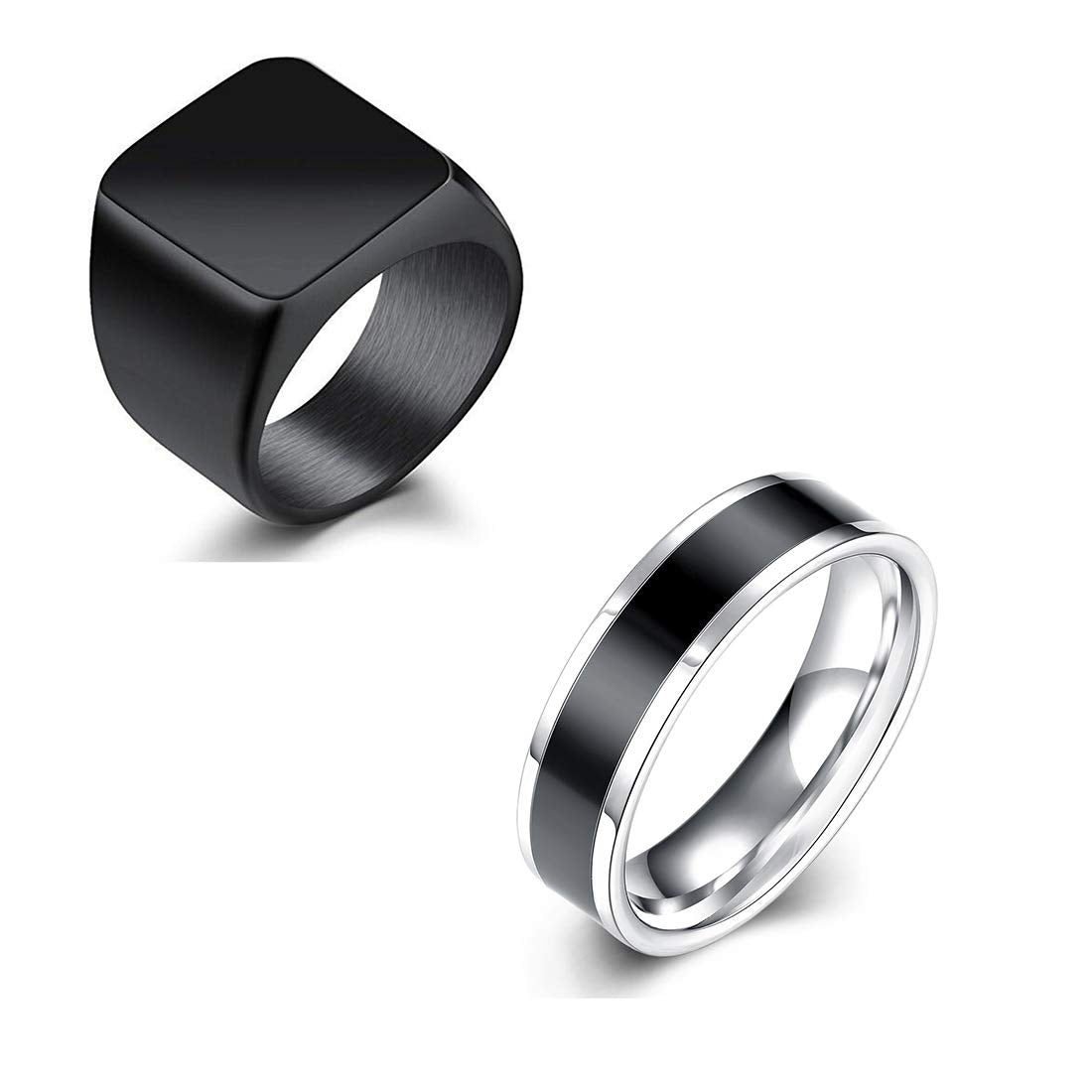 Rings for Men Combo of 2 PCS Ring Rock Cool Casual Sport Noble Black Band Stainless Steel Rings for Men and Boys.