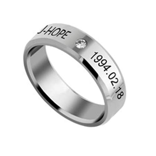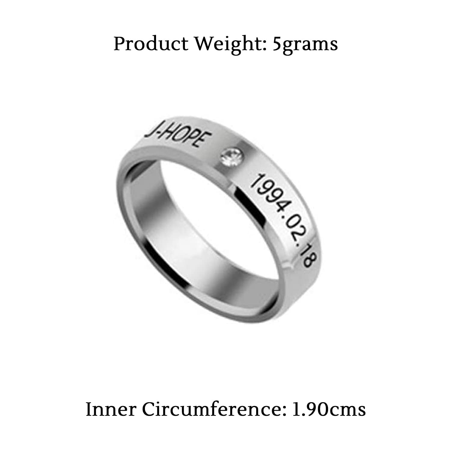 Rings for Men Kpop BTS Band J-Hope Name and Date of Birth Mentioned Silver Band Ring for Men and Boys.