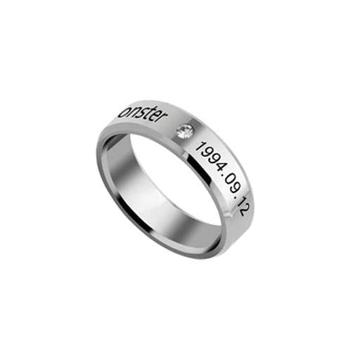 Rings for Men Kpop BTS Band Rap Monster Name and DOB Silver Band Ring for Men and Boys.