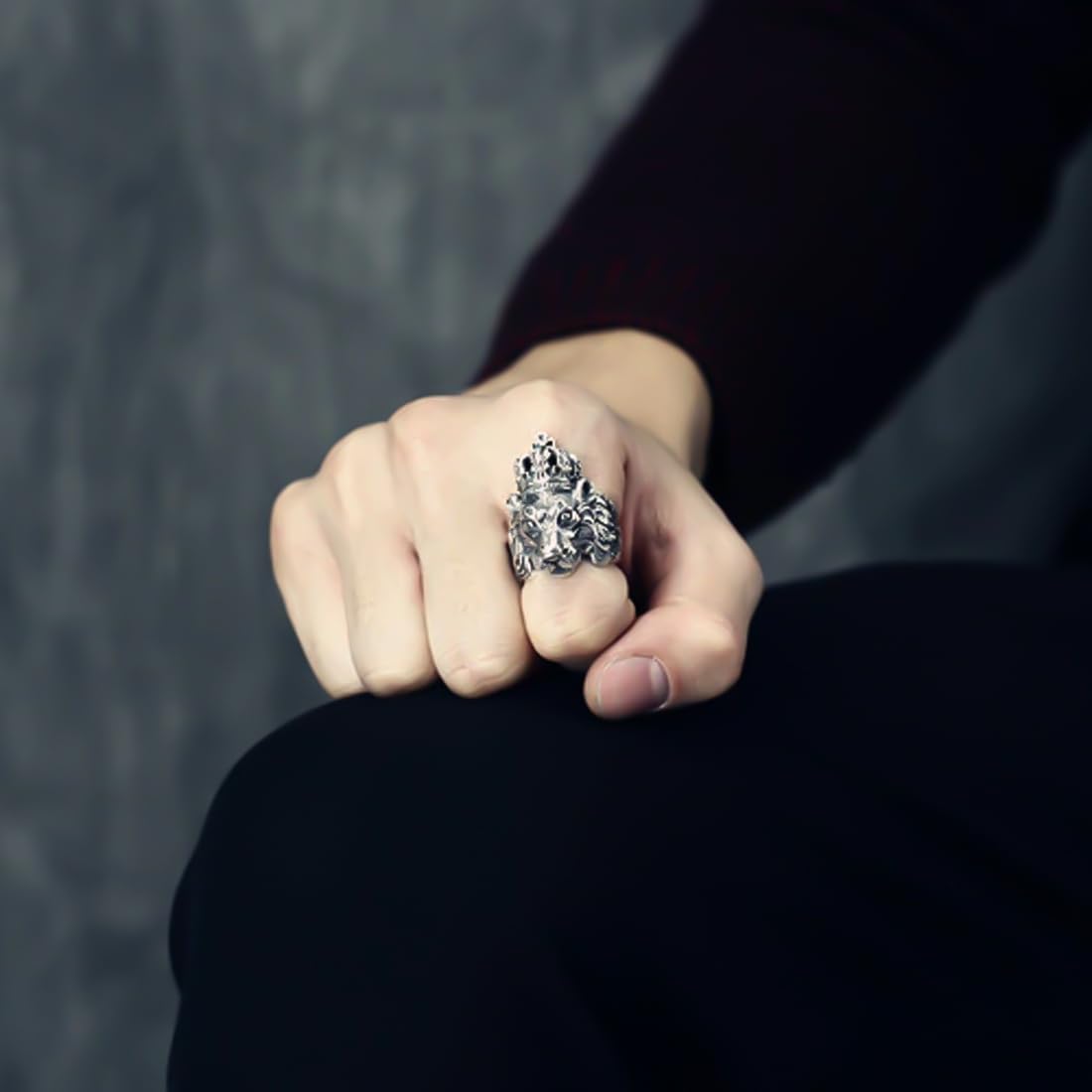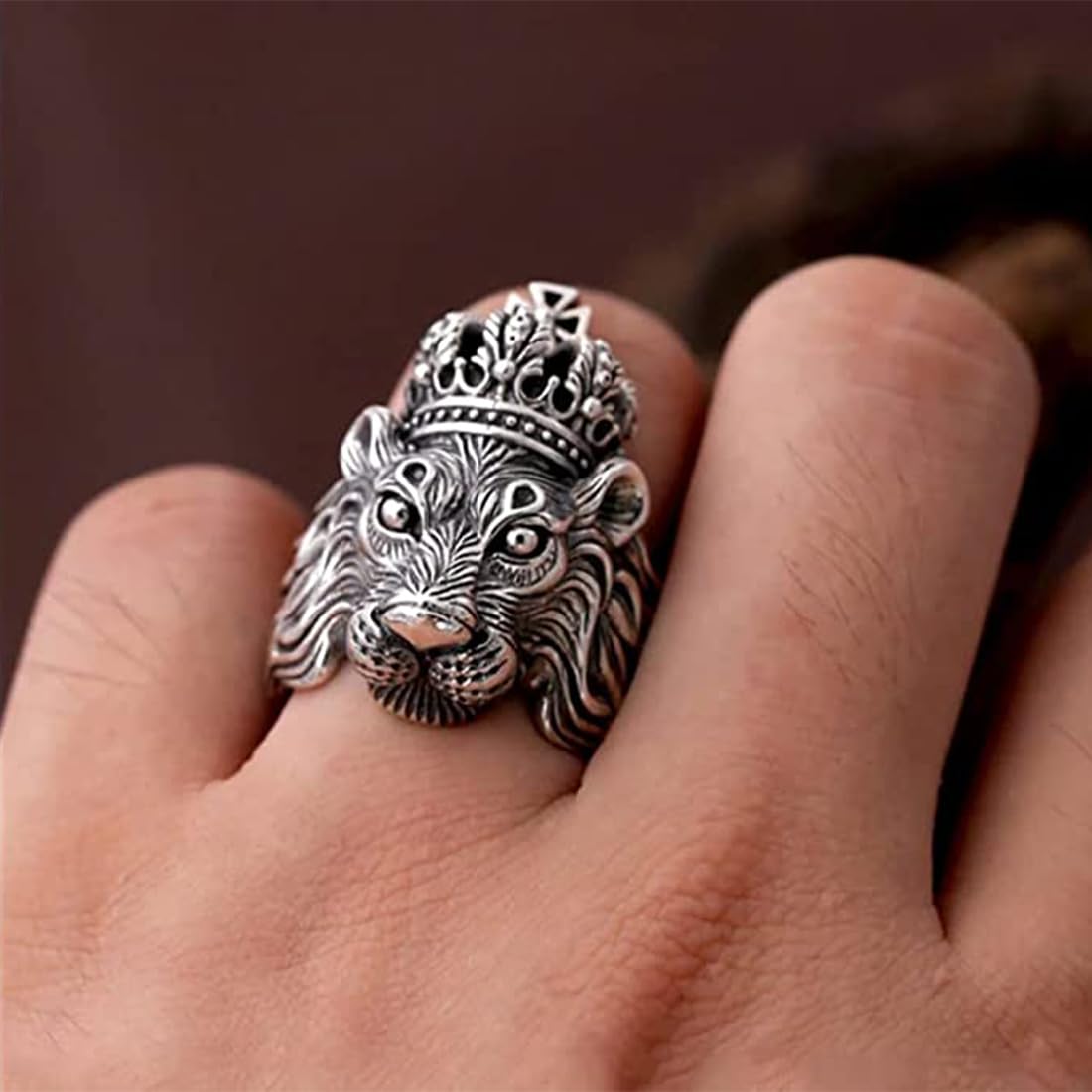 Rings for Men Lion Head Ring 316 Stainless Steel Never Fading Silver Ring for Men and Boys.
