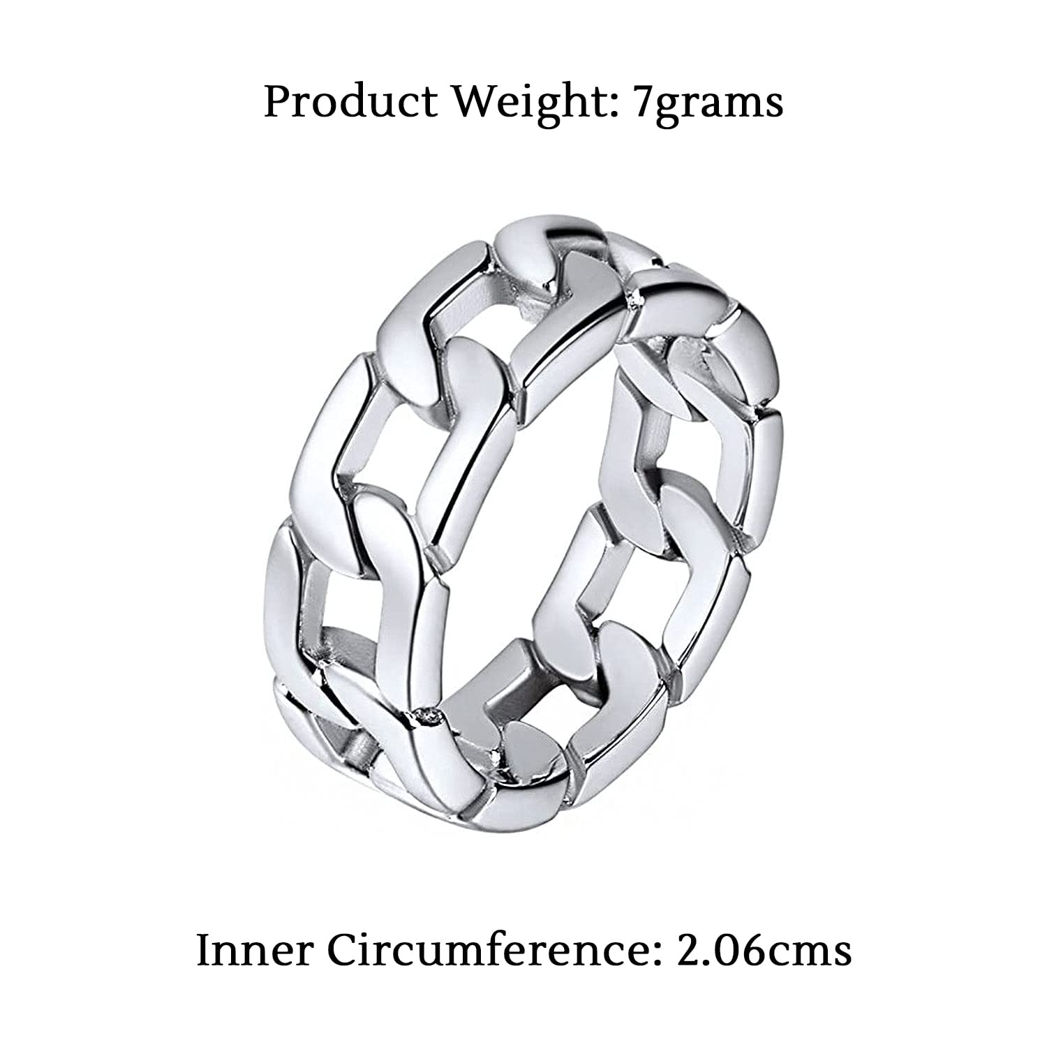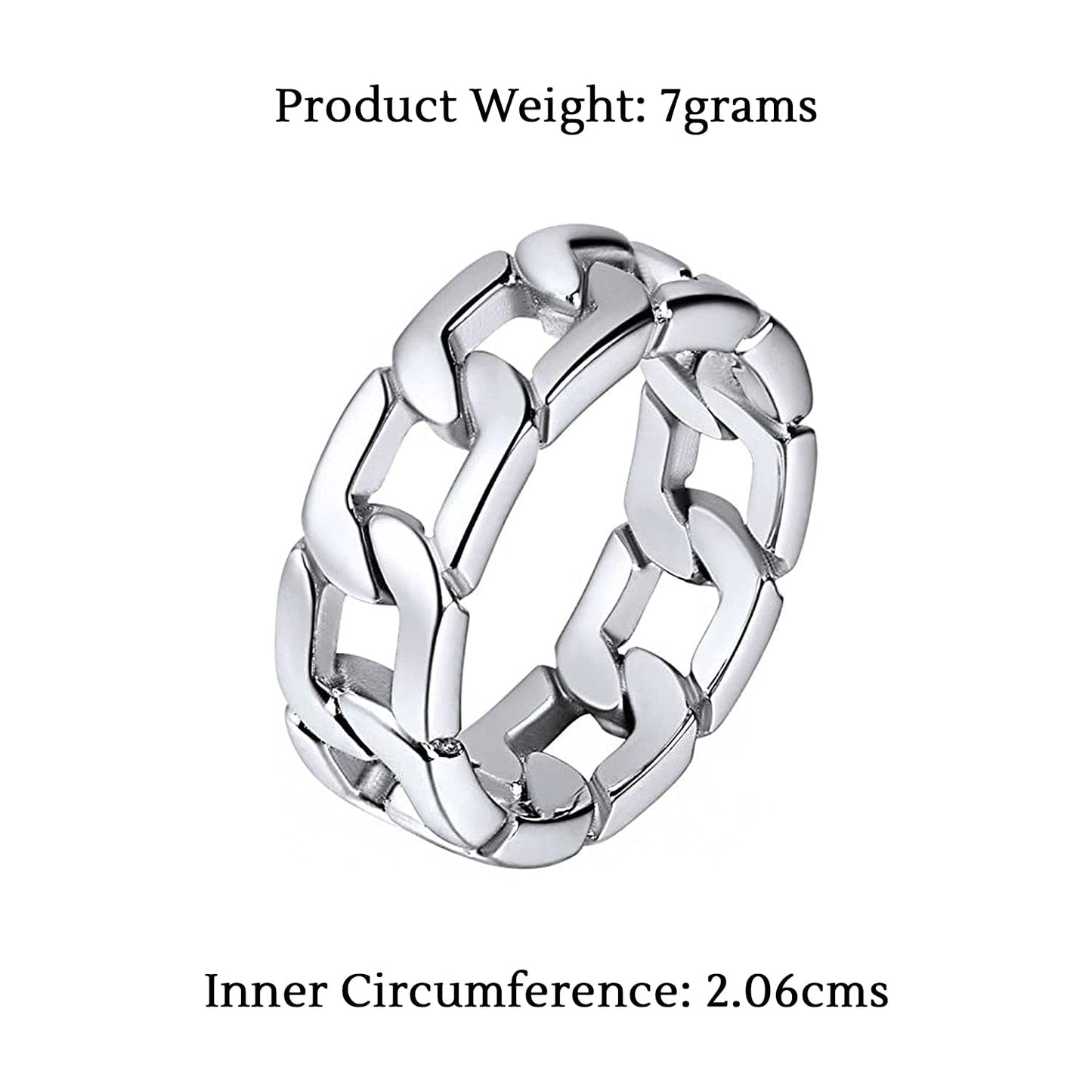 Introducing the Yellow Chimes Silver Chain Ring, a perfect blend of classic style and modern durability. Crafted from premium quality stainless steel, this ring is designed for men and boys who appreciate both fashion and functionality.