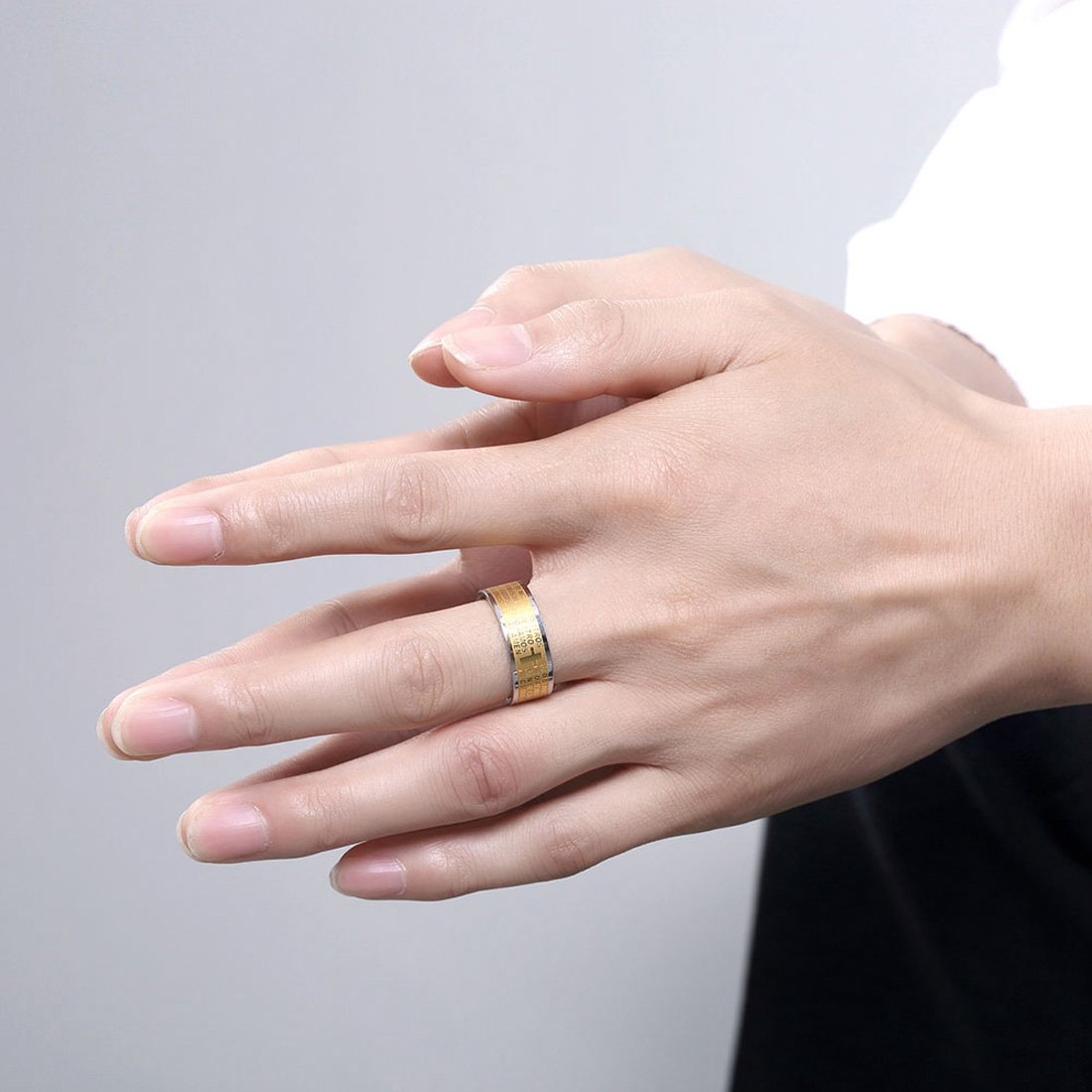 Yellow Chimes Rings for Men Smart Band Designed Yellow and Silver-toned Stainless Steel Numeric Designed Rings for Men and Boys Band Ring with engraved Surface- great choice for all your casual wear. Band style makes it comfortable to work. The Product has plating done on steel with IP Process. IP process Plating makes it never fading of color, and keeps the shine if it is taken care Pure surgical stainless steel is used to make this Produtc which doesnt cause any harm to skin. Nickel free and Lead free as per International Standards Perfect Best suitable for Men.Size is US 10, which in 19.8 mm of inner circumfrence. Gift for men - ideal valentine, birthday, anniversary gift for someone you love . with our packaging box, you do not need to opt-in for any additional gift packaging. the product comes in a beautiful elegant ready-to-gift box