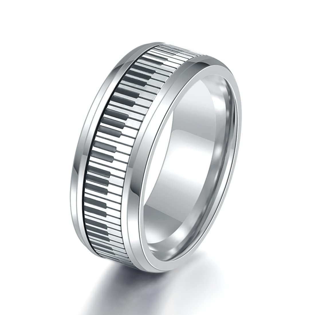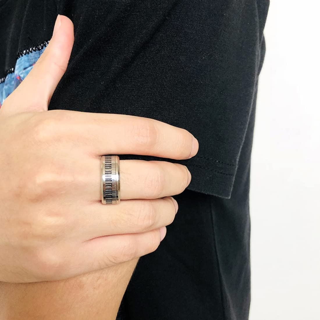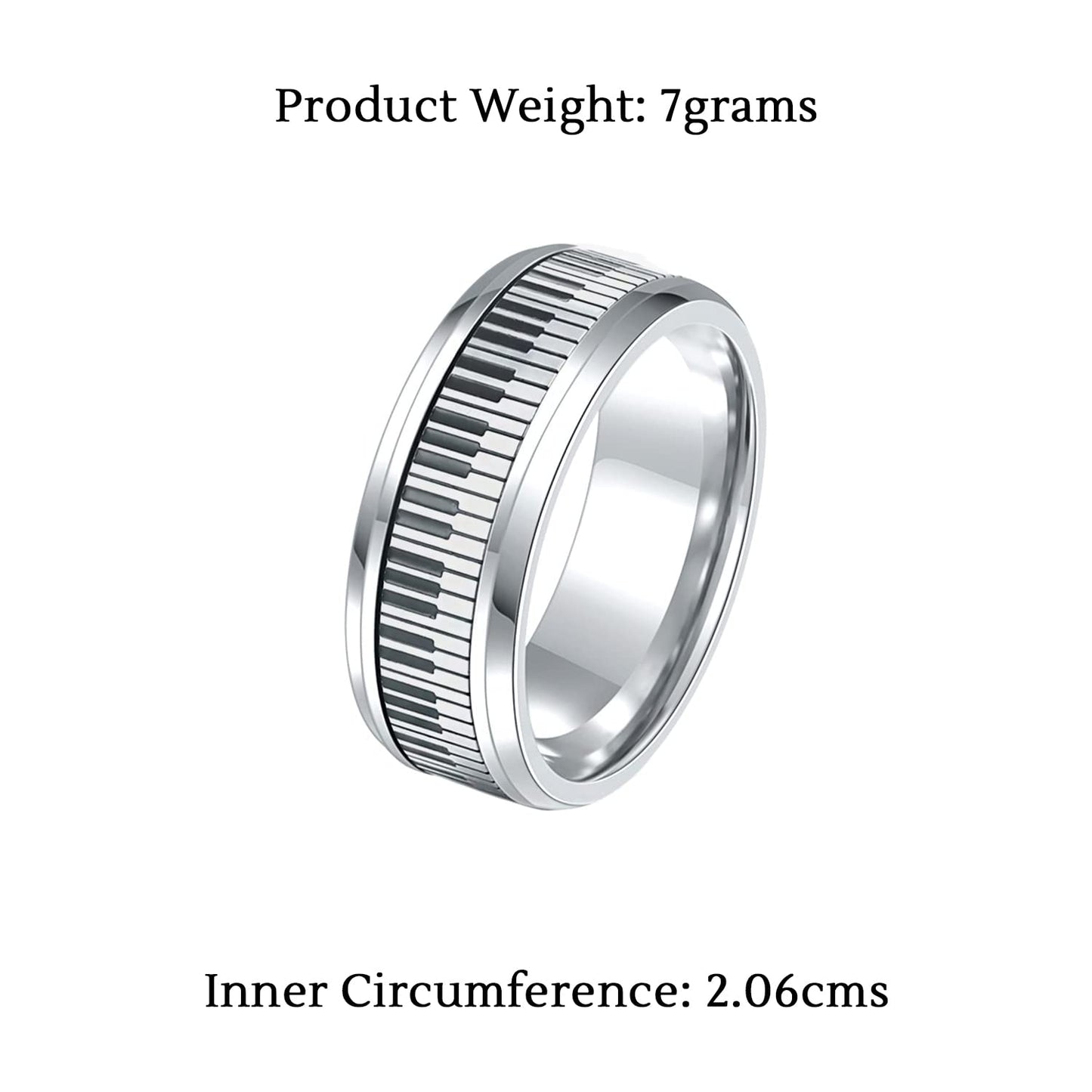 Silver Toned Ring For Men | Pack of 1 Stainless Steel Band Ring | Silver Piano Keyboard Finger Ring for Boys | Ideal Gift For Men and Boys