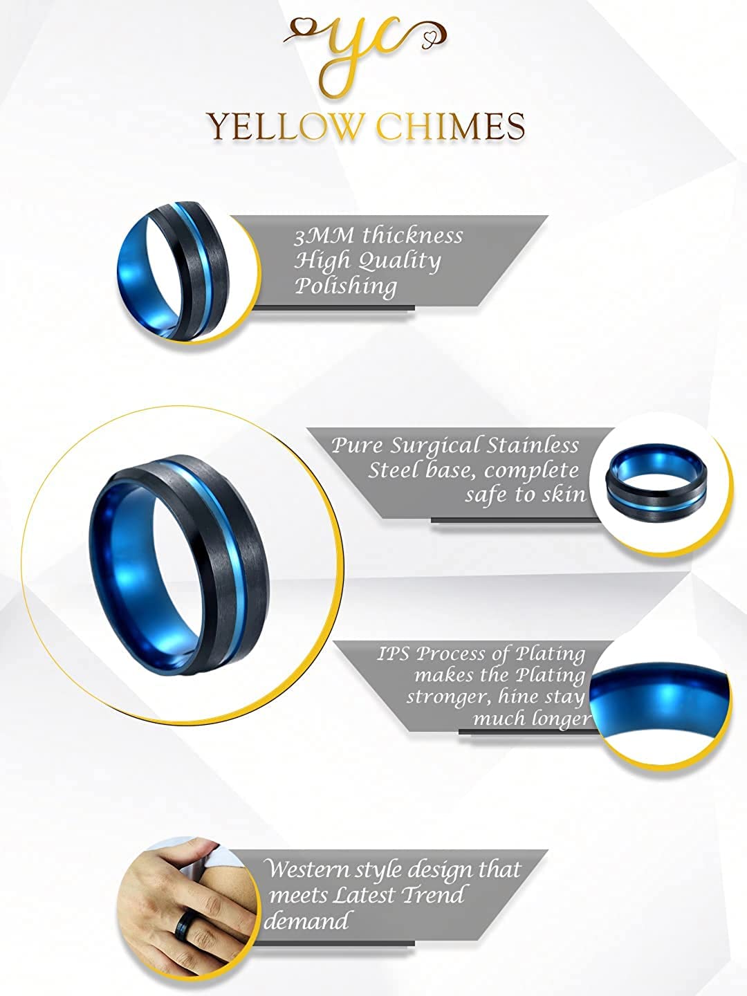 Yellow Chimes Rings for Men Stainless Steel Ring Dual Tone Smooth Finish Stainless Steel Band Ring for Men and Boys.