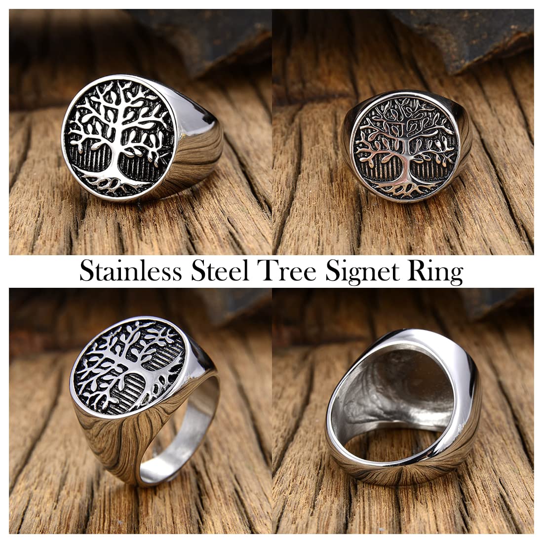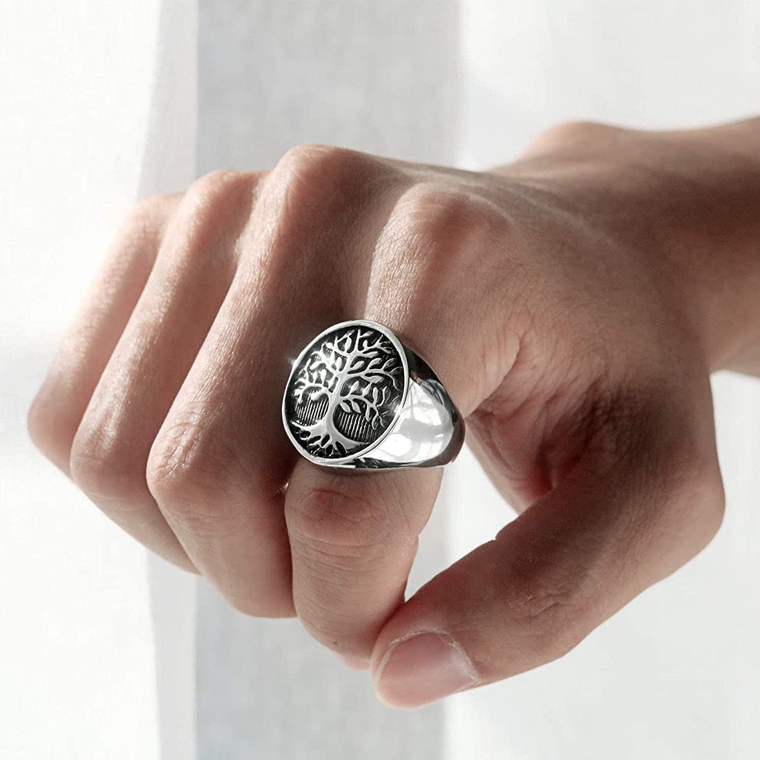 Rings for Men Stylish Silver toned Stainless Steel Tree Signet band Ring for Men and Boys.