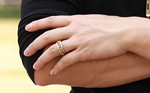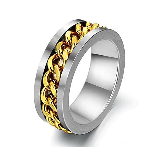 Rings for Men Tough Dude Chain Ring Stainless Steel Golden Chain Rings for Men and Boys.