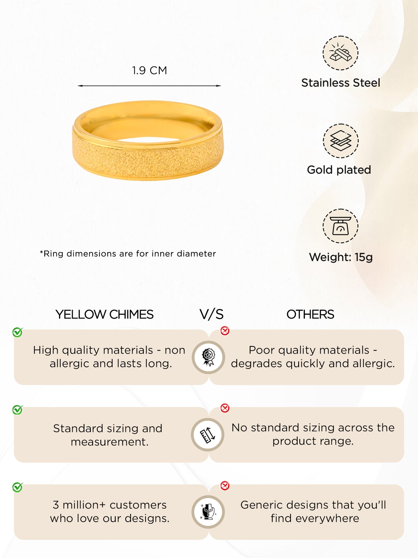 Elevate your style with the Yellow Chimes Rings for Men, expertly crafted from premium titanium and stainless steel. This stunning Western Style Band Ring from our Titanium Collection features a unique Stardust Gold finish that adds a touch of sophistication to any outfit.