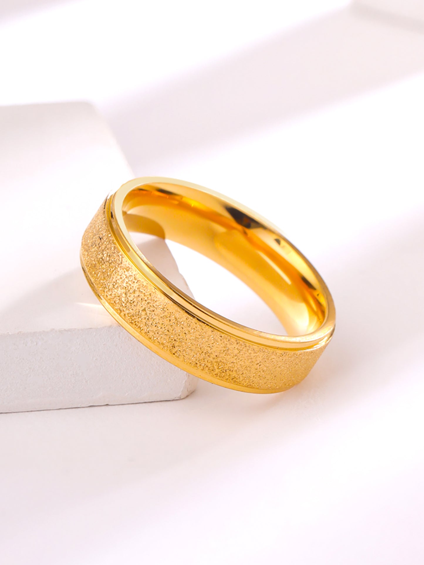 - The ring is suitable on casual as well as formal wear. This titanium steel gold band is trendy at looks and comfortable to carry