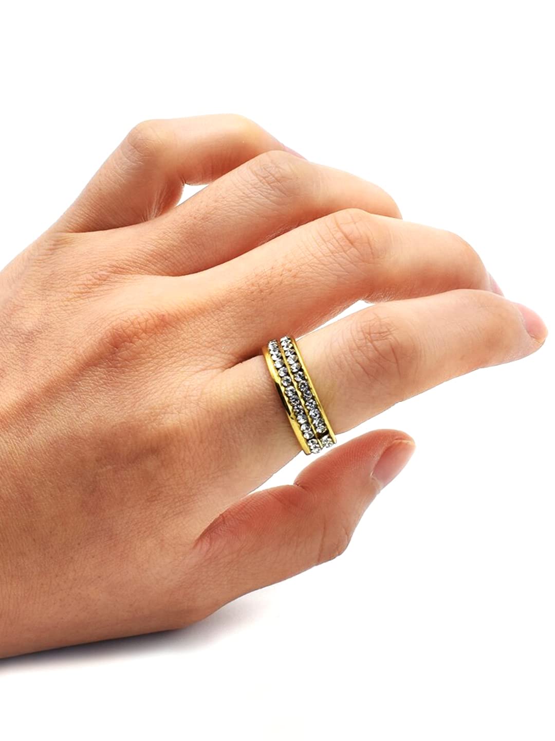 Rings for Mens and Boys Crystal Ring | Gold Plated Crystal Studded Finger Ring for Men | Birthday Gift For Boys and mens Anniversary Gift for Husband
