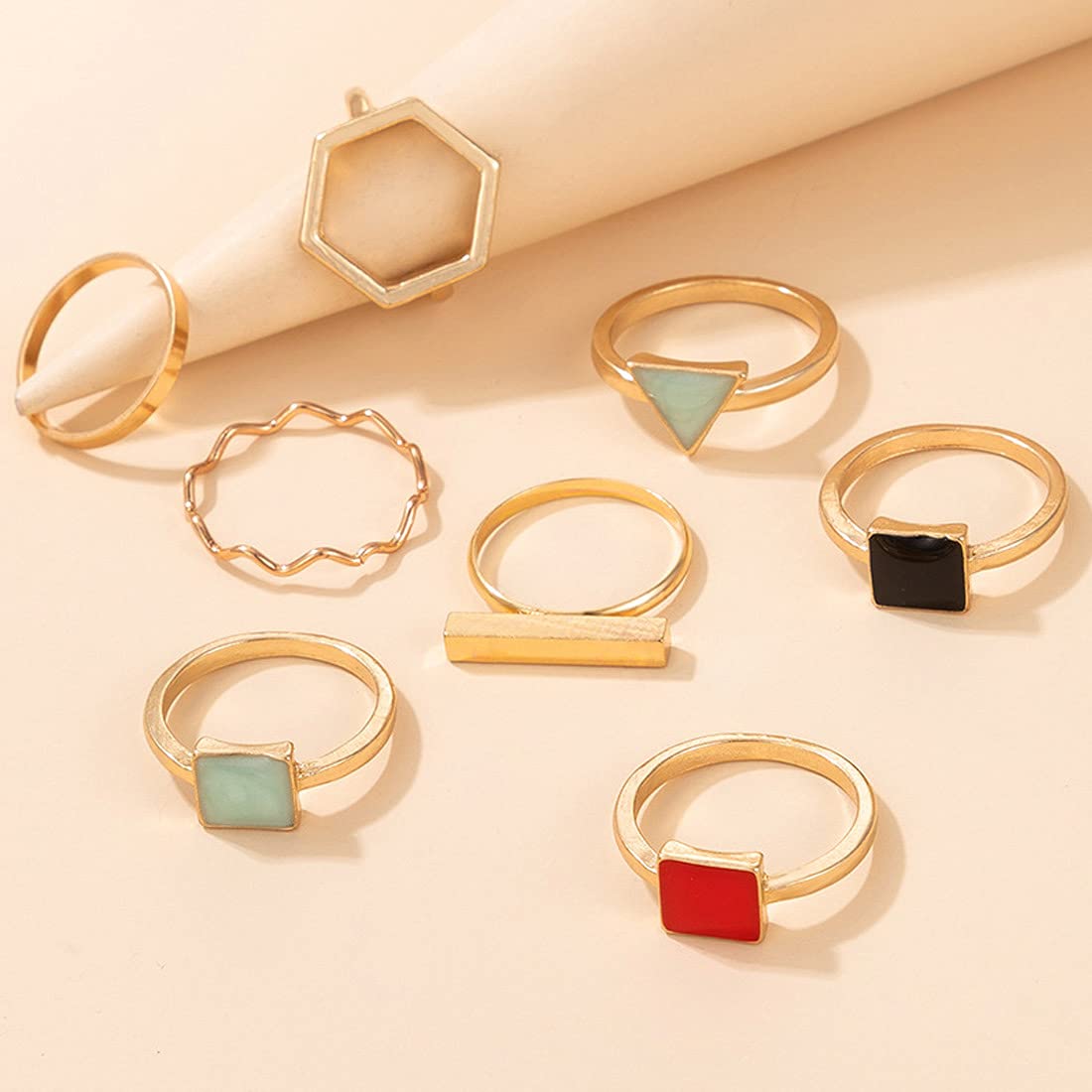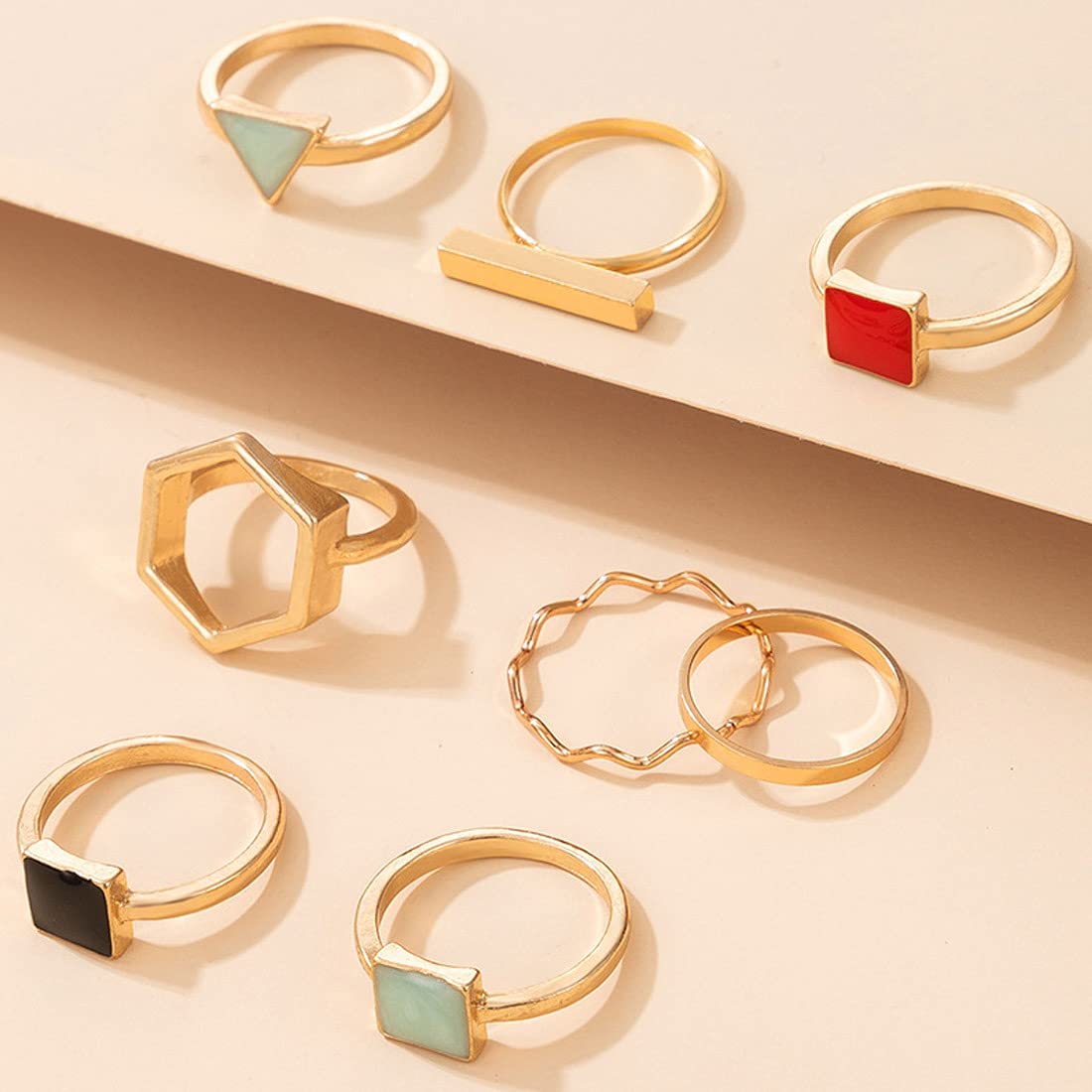 Rings for Women and Girls Fashion Aesthetic Multicolor Ring Set | Gold Plated Aesthetic Ring Knuckle Rings Set 8 Pcs Combo Geometric Rings | Birthday Gift For Girls and Women