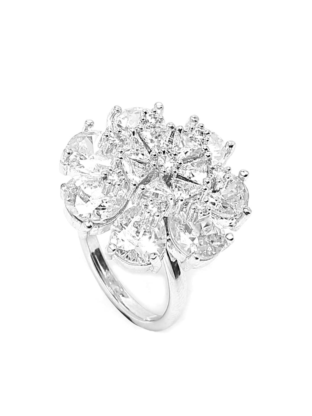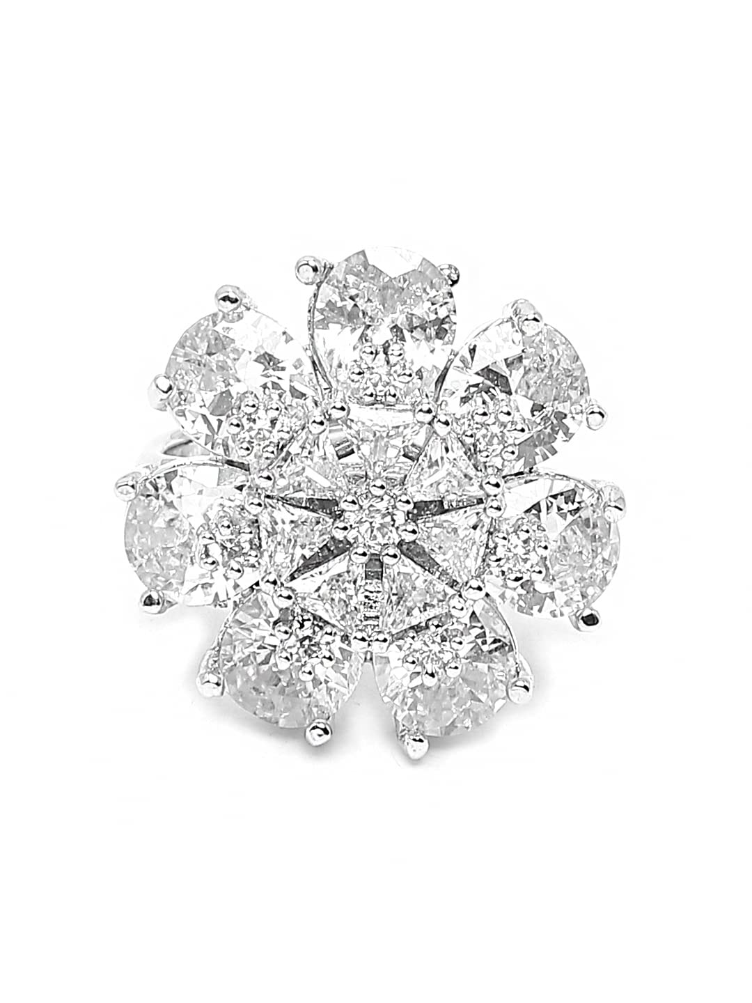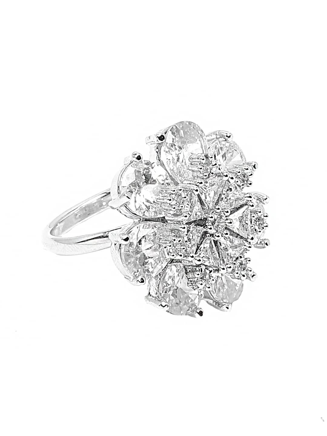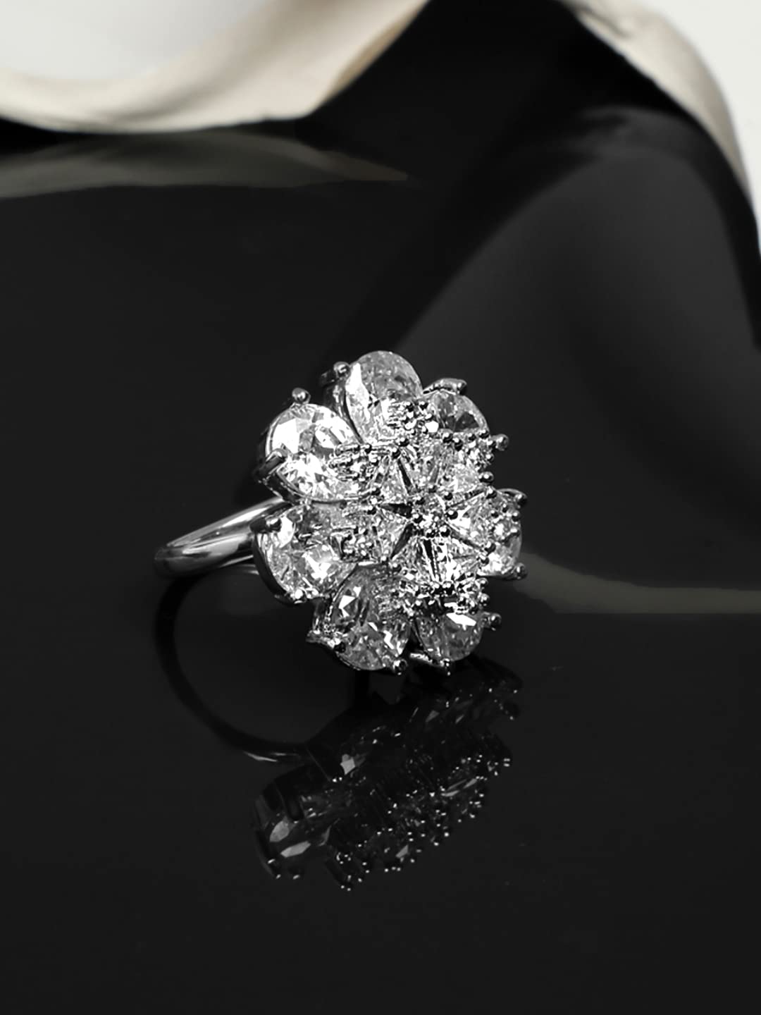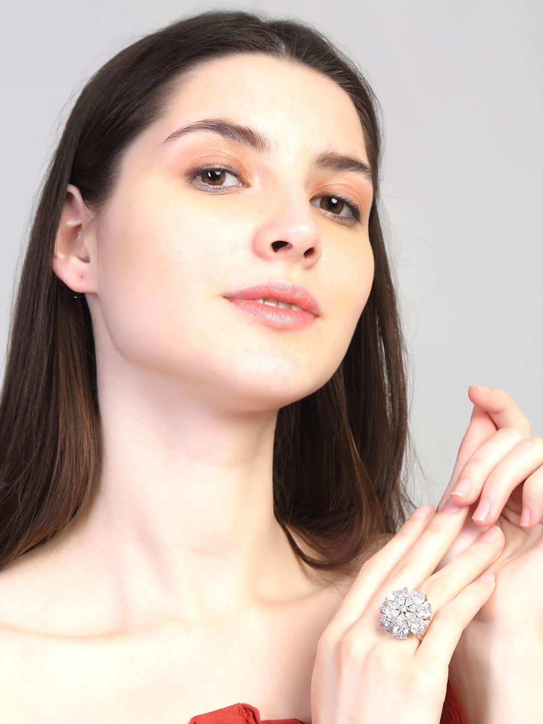 Rings for Women American Diamond Ring Rhodium-Plated White AD-Studded Floral Finger Ring For Women and Girls.