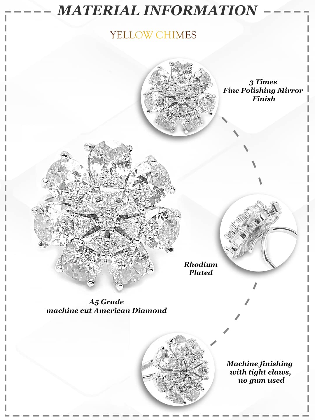 Yellow Chimes Rings for Women American Diamond Ring Rhodium-Plated White AD-Studded Floral Finger Ring For Women and Girls.