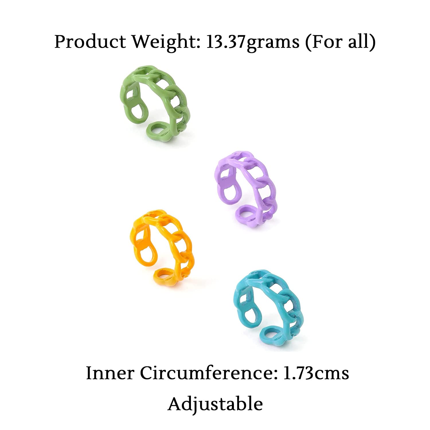 Yellow Chimes Rings for Women and Girls Adjustable Rings | Multicolor 4 Pcs Chunky Chain Ring Set Knuckle Finger Stackable Band Ring | Birthday Gift For Girls and Women