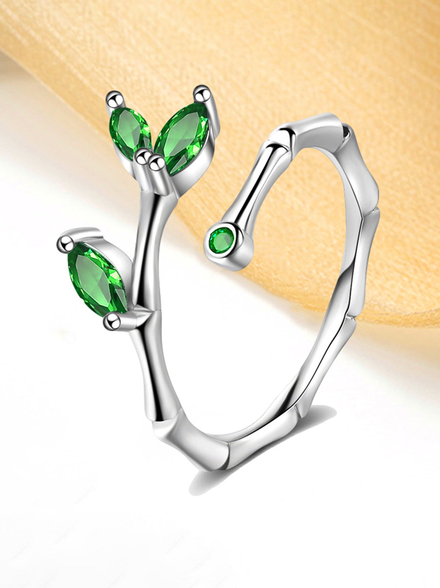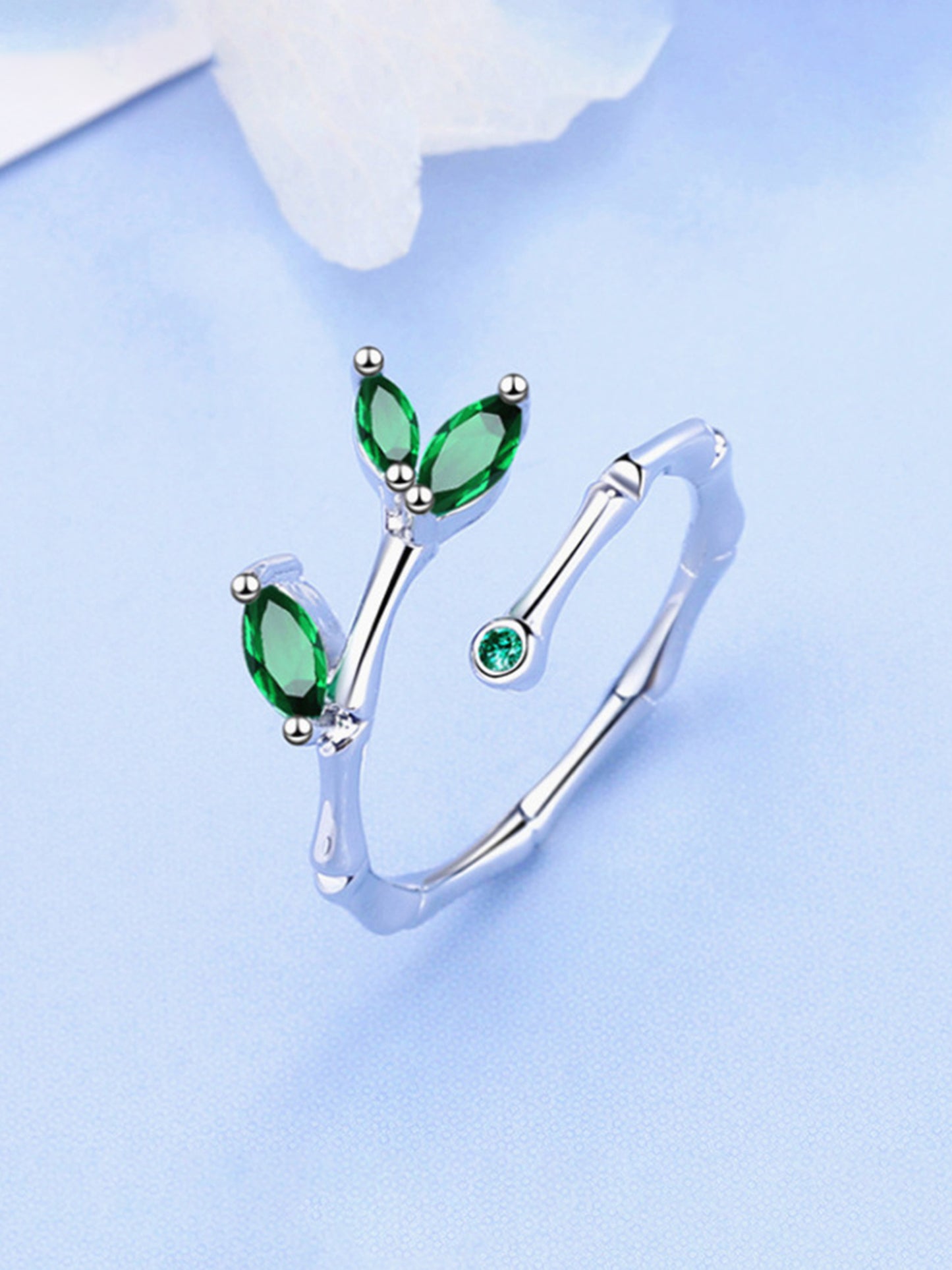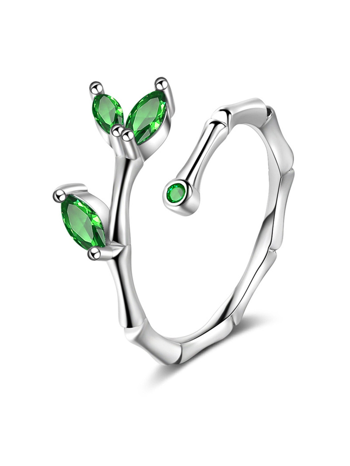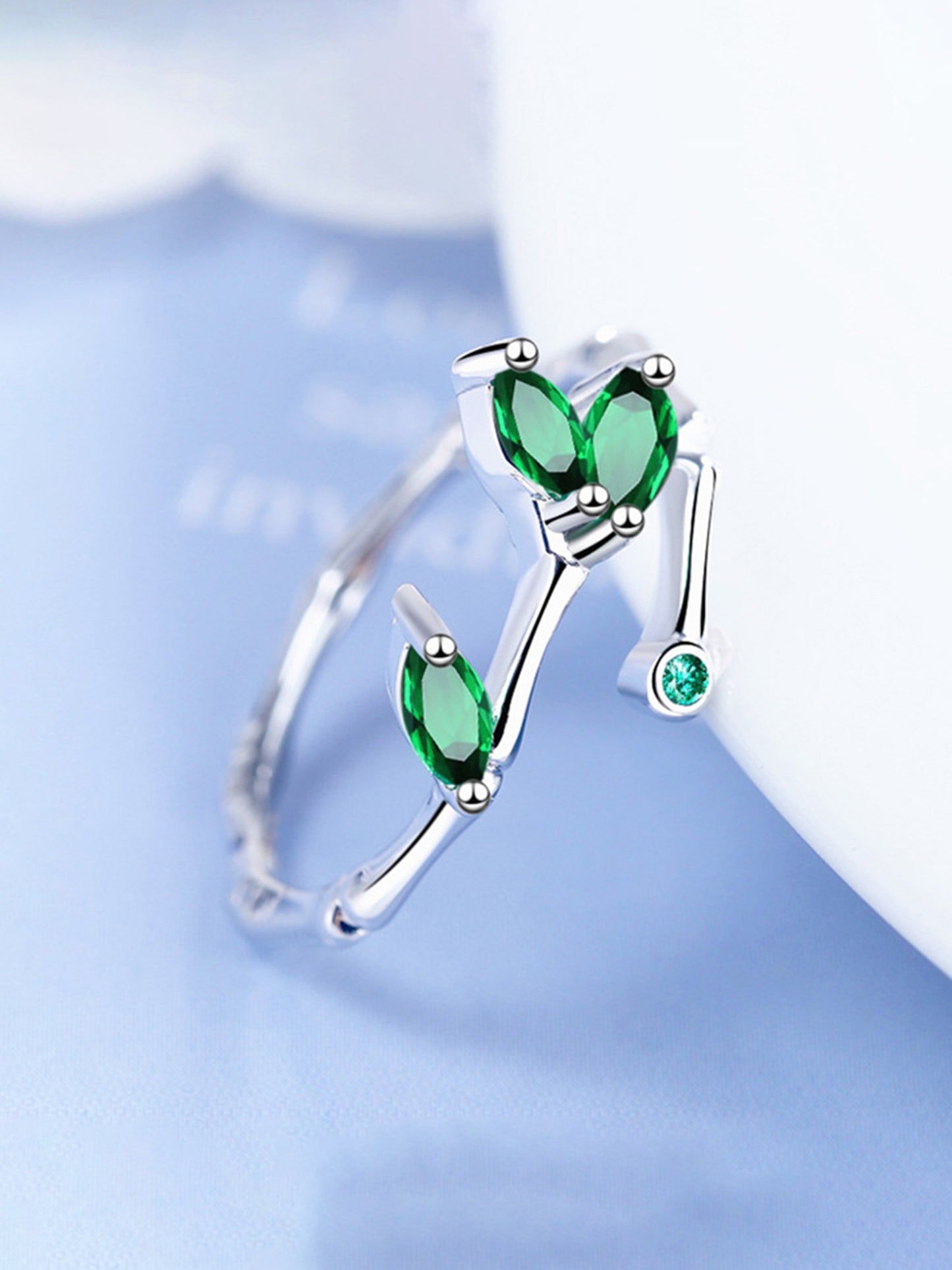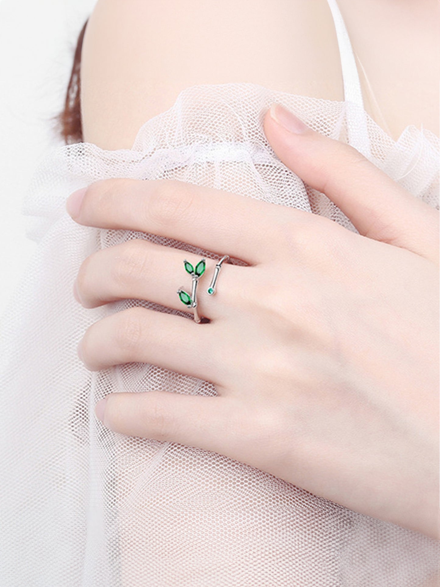 Rings for Women and Girls Fashion Green Ring | Adjustable Crystal Rings | Silver Tone Leafy Shaped Finger Ring for Women | Birthday Gift For Girls & Women Anniversary Gift for Wife