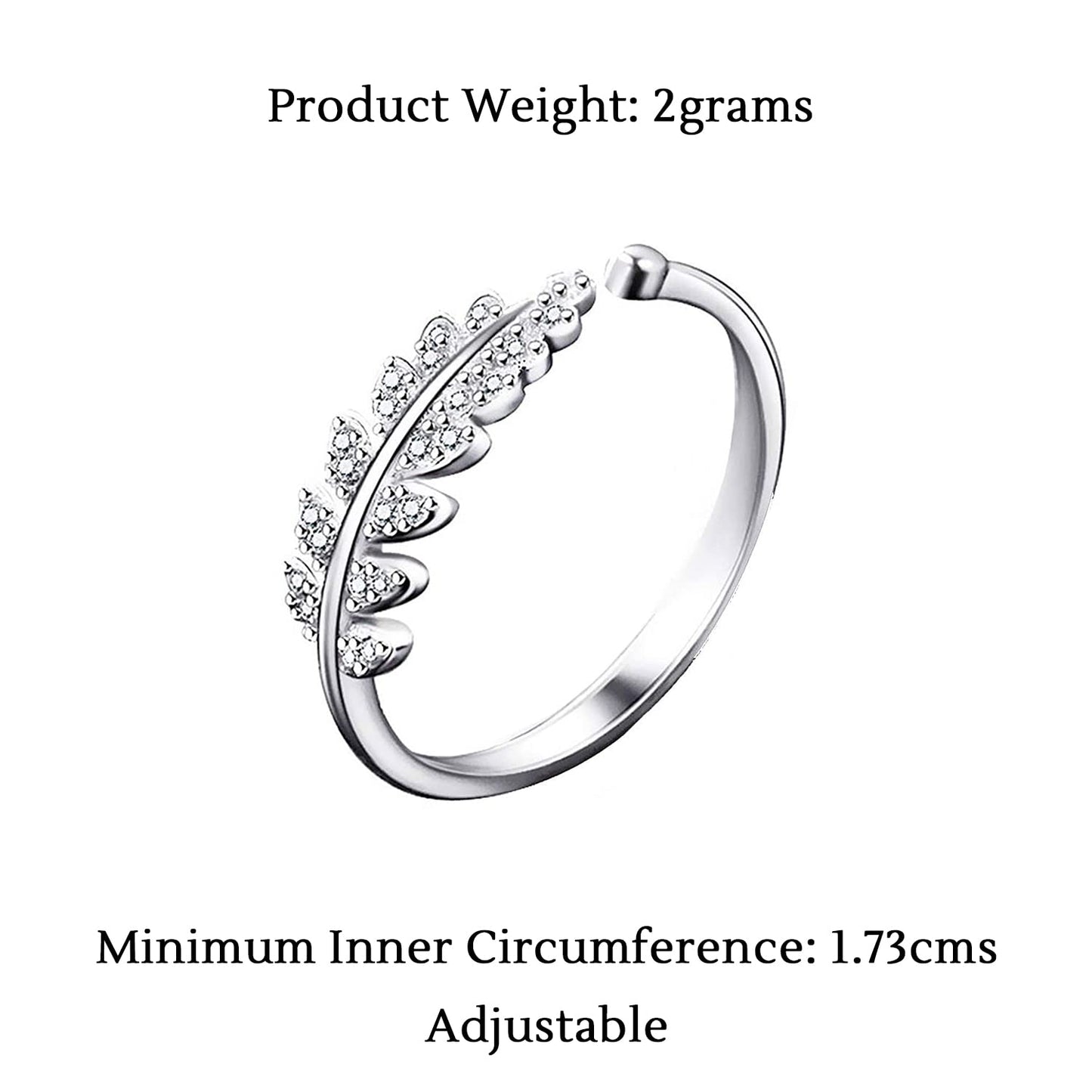 Crystal Rings For Women | Adjustable Silver Ring Cubic Zircon Crystal Ring | Leafy Shaped Rhodium Plated Finger Ring for Girls | Birthday Gift For Girls & Women Anniversary Gift for Wife