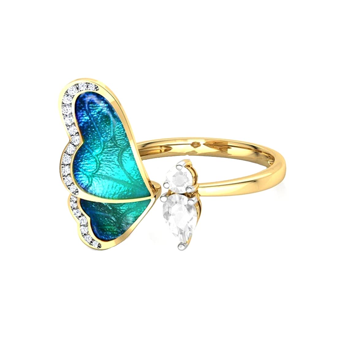 Yellow Chimes Rings for Women Elegant Gold Plated Blue Butterfly Crystal Ring for Women and Girls (Ring Design 2)