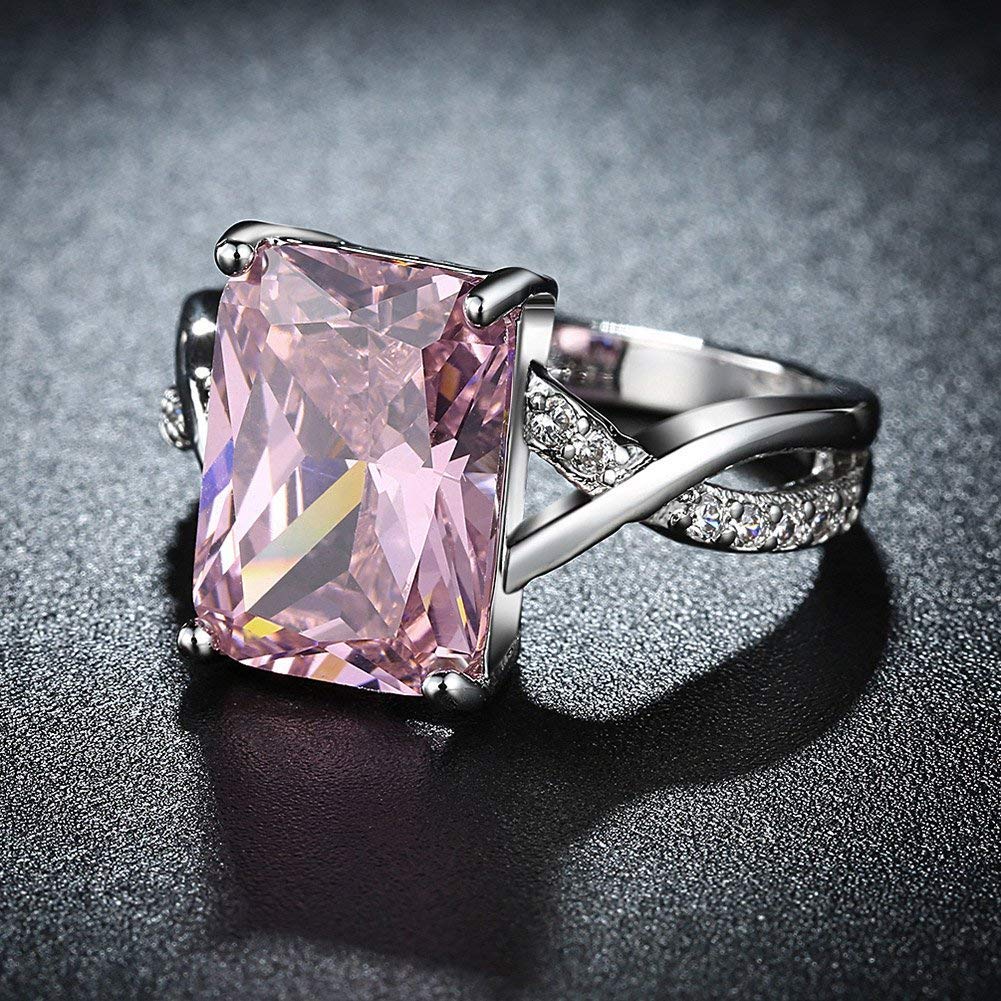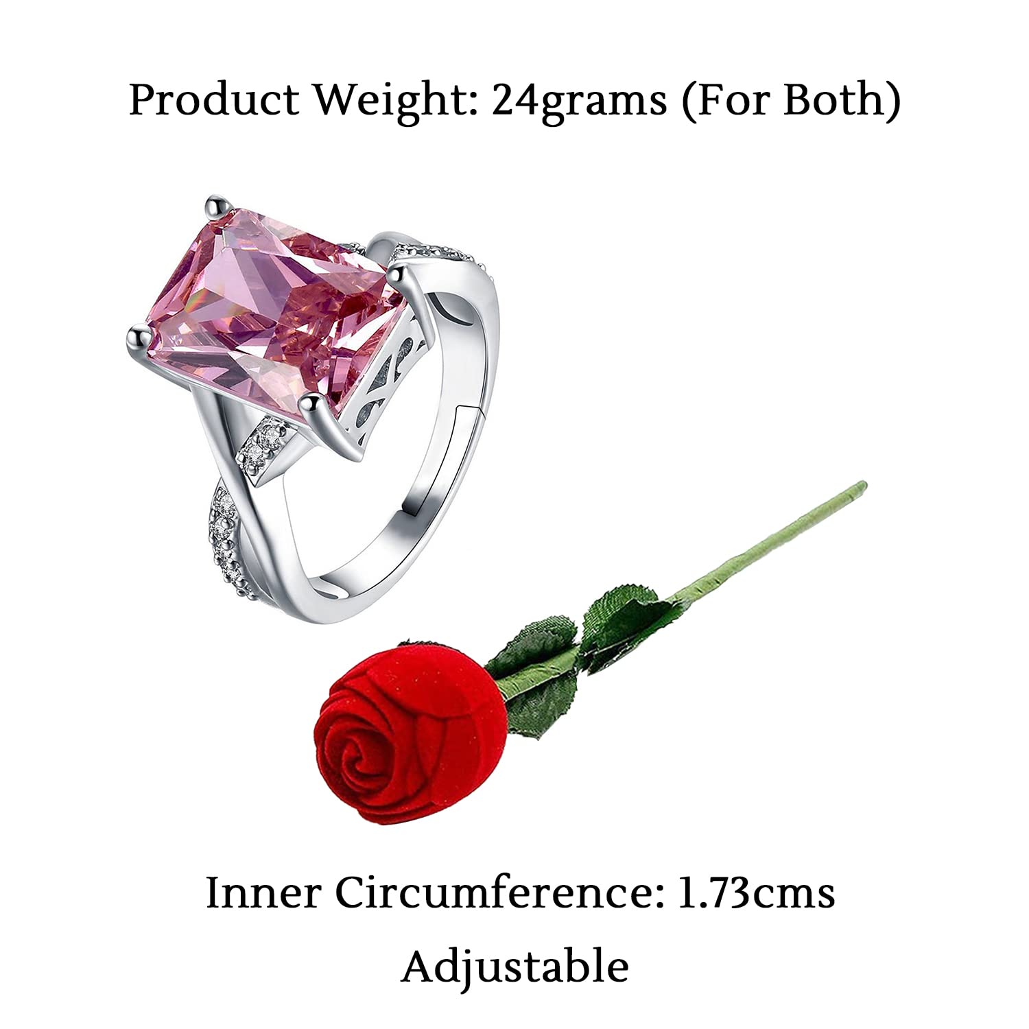 Rings for Women Valentines Gift Set of Crystals from Swarovski Pink Colored Silver toned Ring in Red Velvet Rose Ring Box for Women and Girls (Size US 8)
