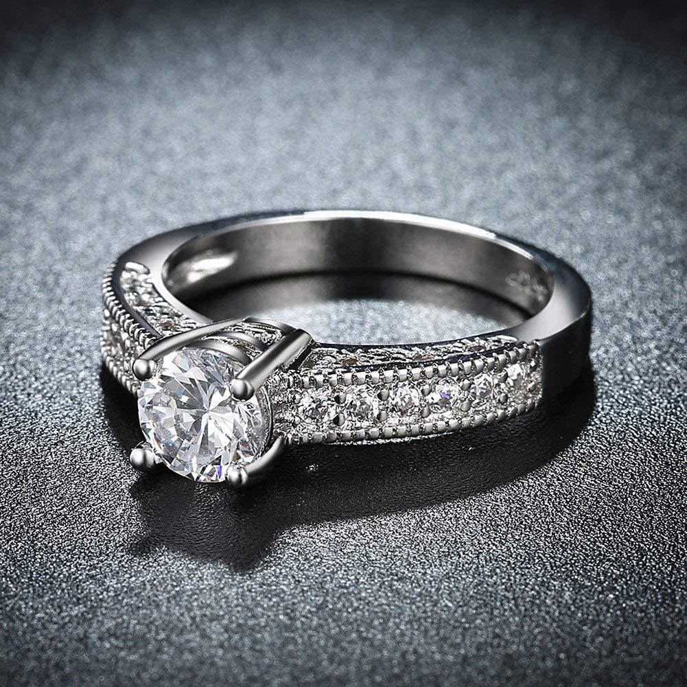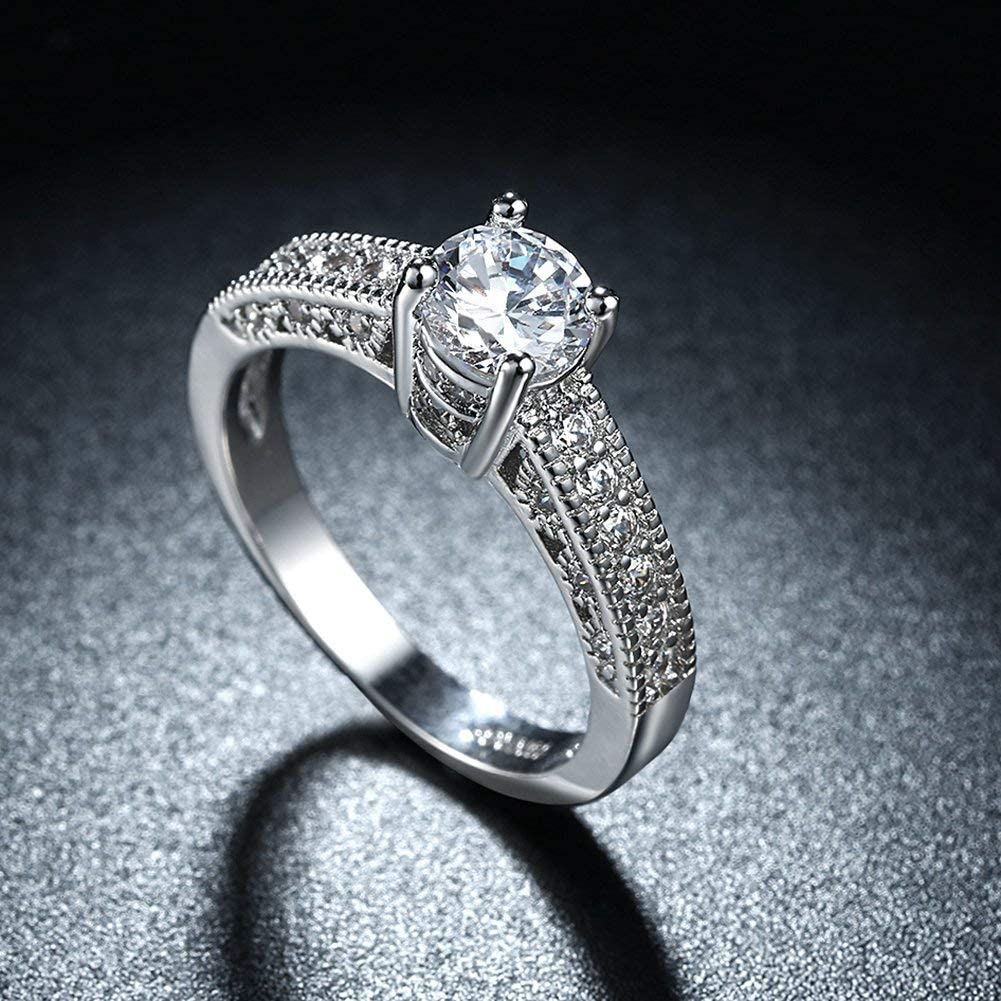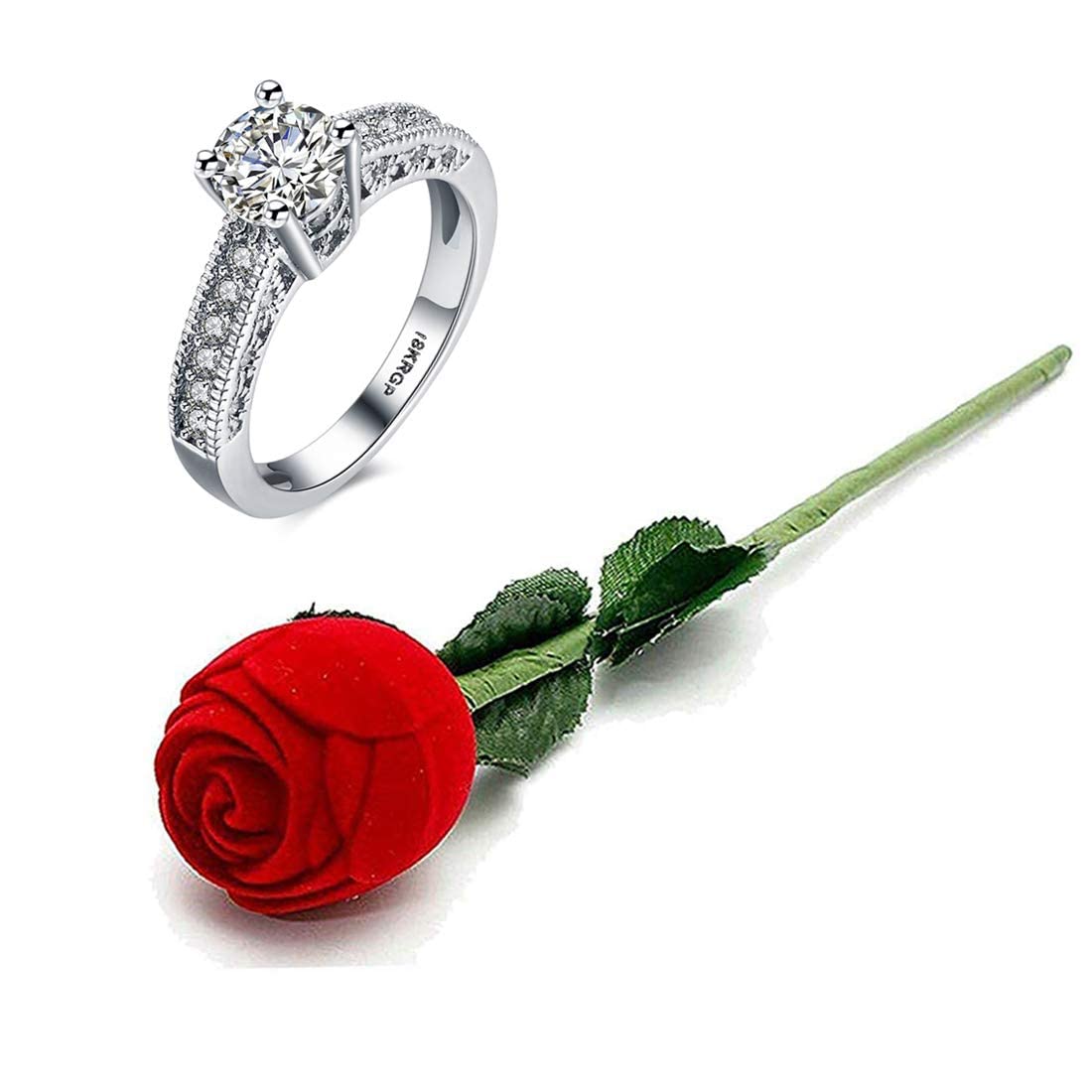Rings for Women Valentines Gift Set of White Colored Crystals from Swarovski Designed Ring in Red Velvet Rose Ring Box for Women and Girls (Size US 8)