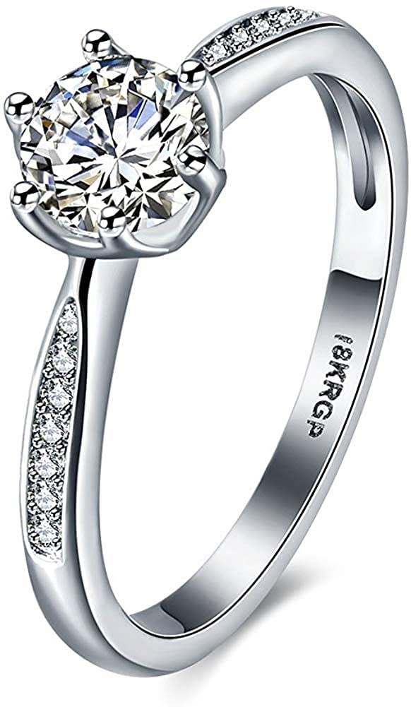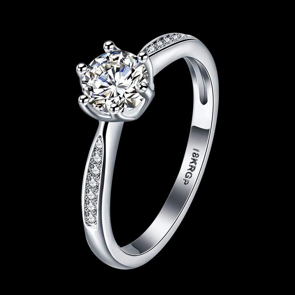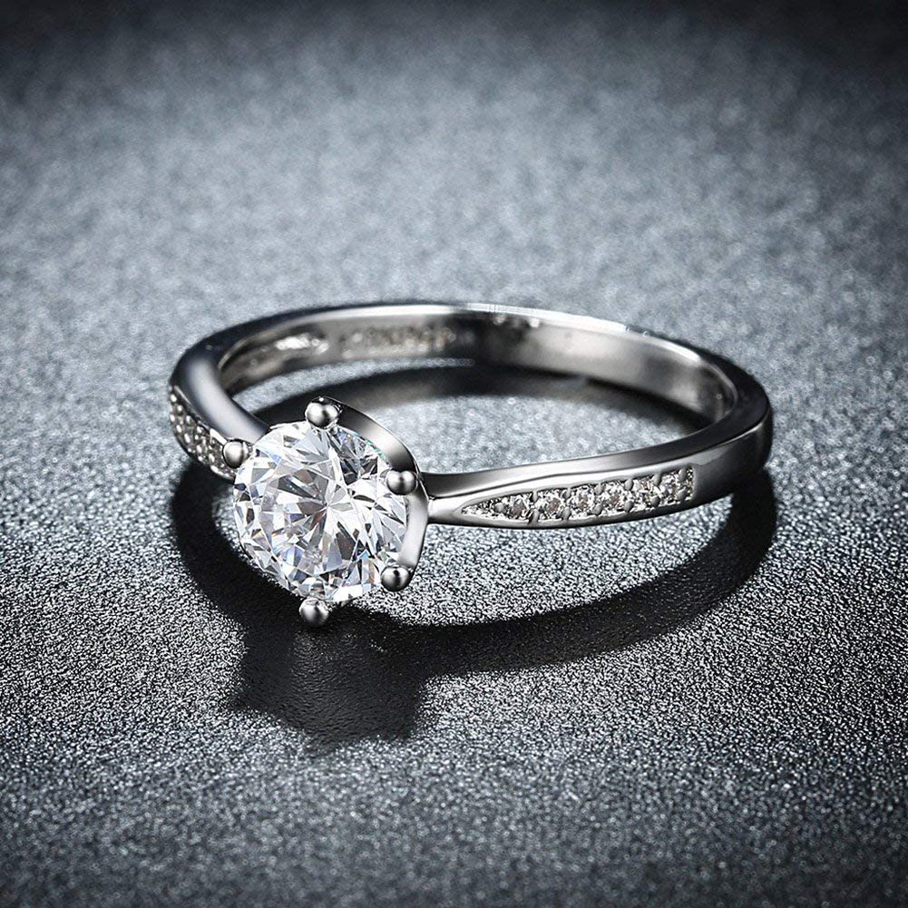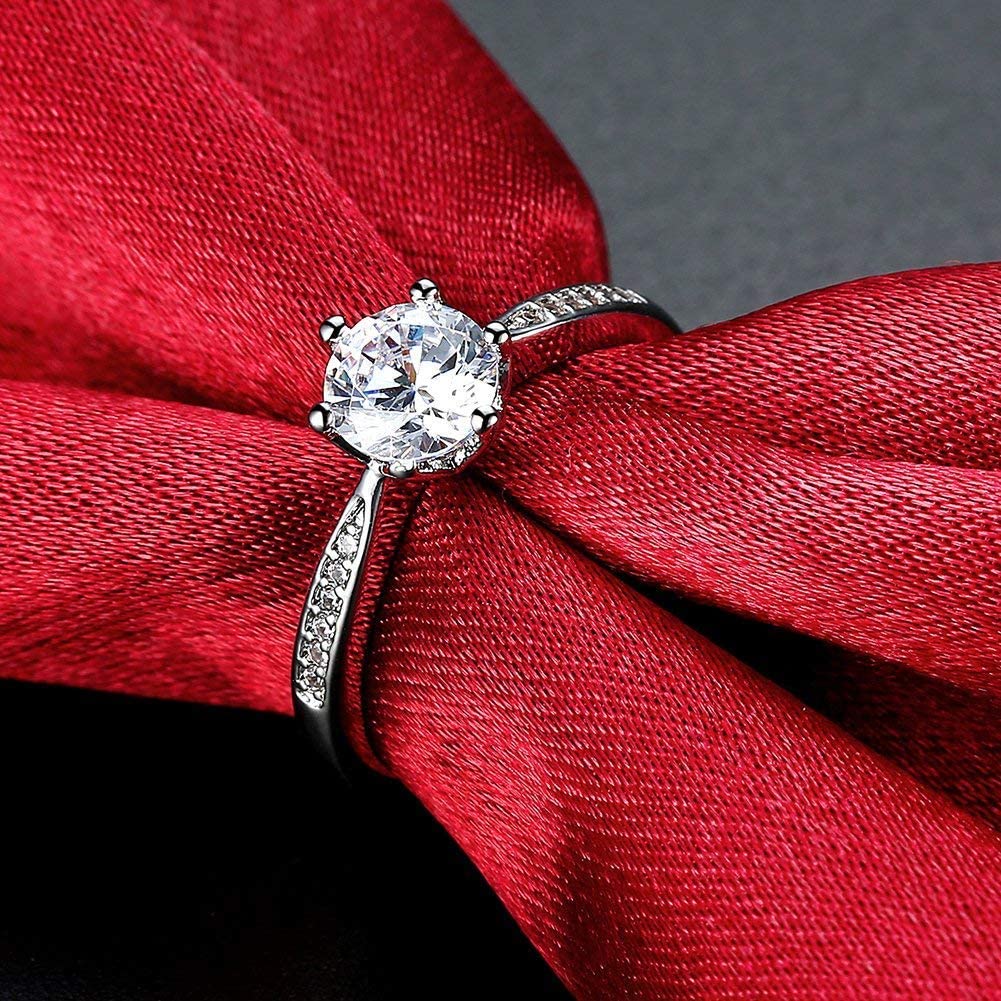 Rings for Women Valentines Gift St of Crystals from Swarovski Silver toned White Colored Ring in Red Velvet Rose Ring Box for Women and Girls(Size US 6)