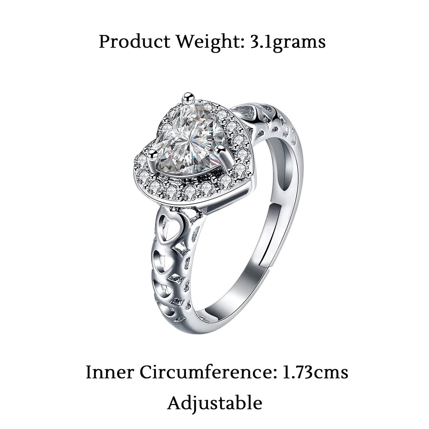 Crystal Rings For Women | Adjustable Silver Ring Heart Shaped Crystal Ring | Valentine Special Rhodium Plated Finger Ring for Girls | Birthday Gift For Girls Anniversary Gift for Wife