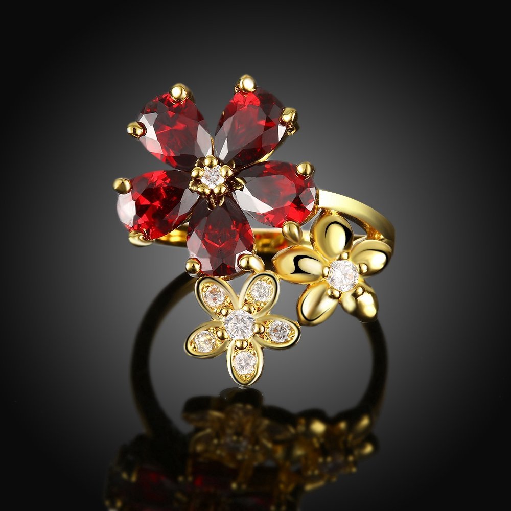 Rings for Women White and Red stoned Crystal Floral Designed Gold toned Smooth Finished Ring for Women and Girls