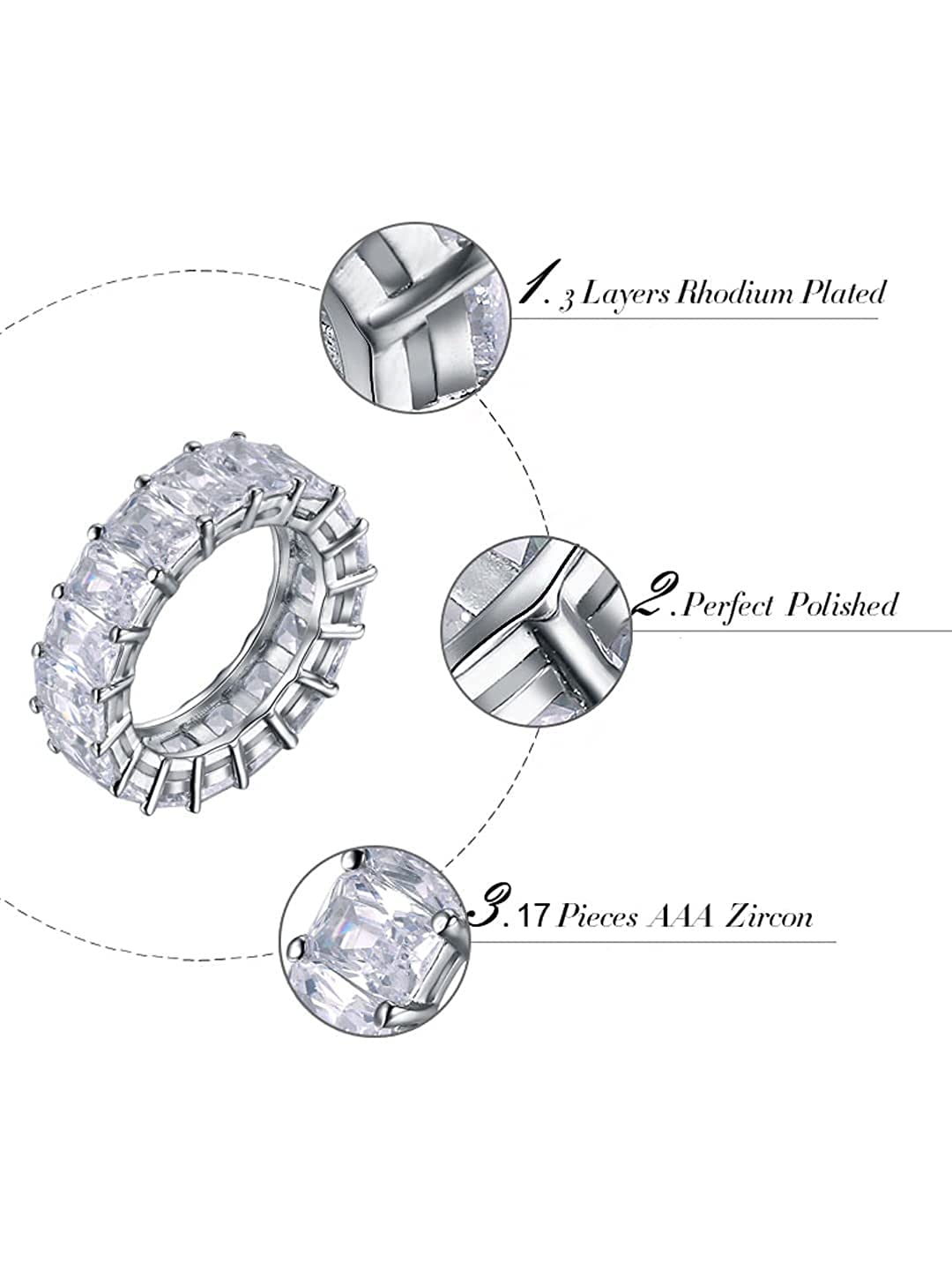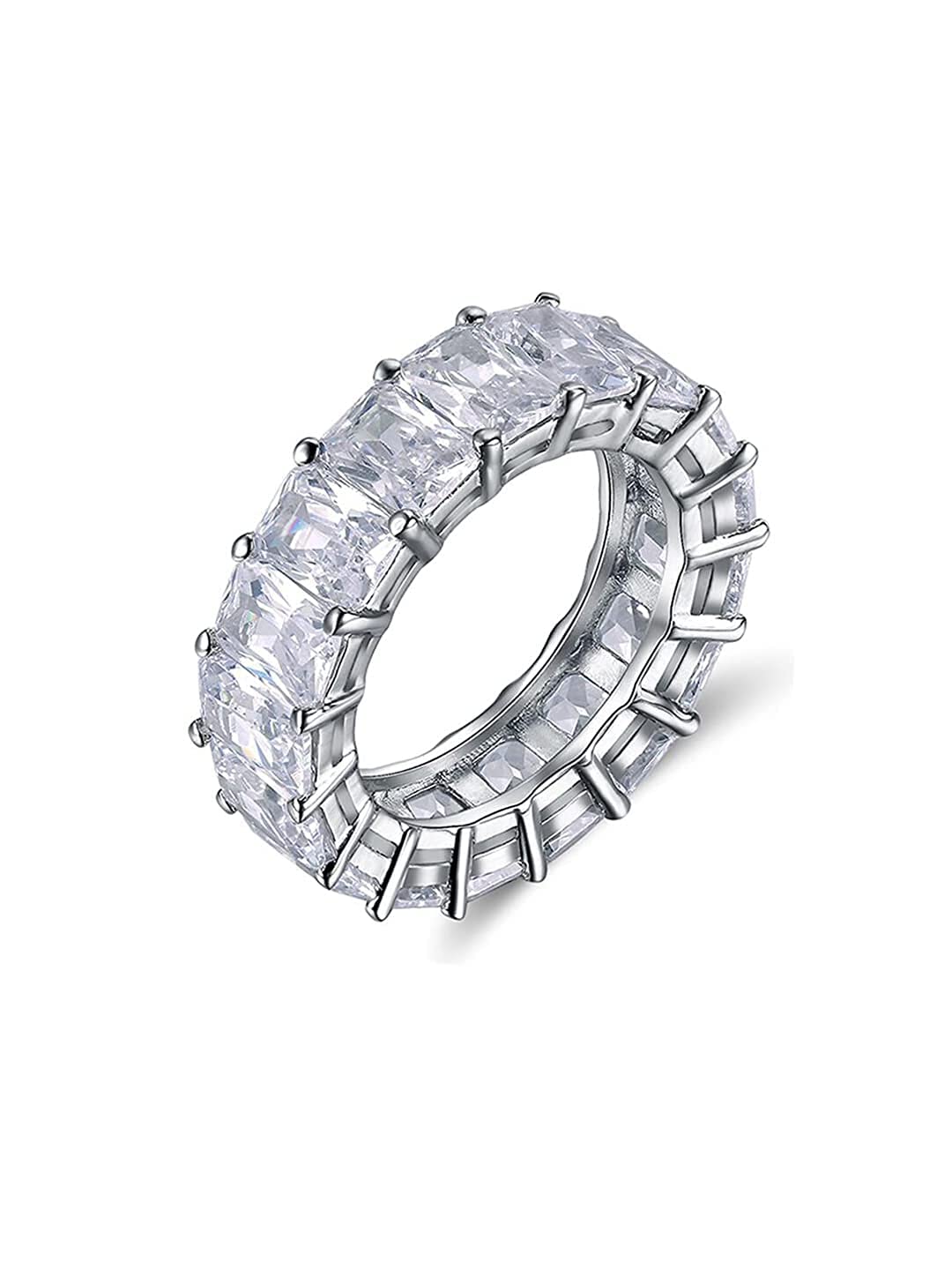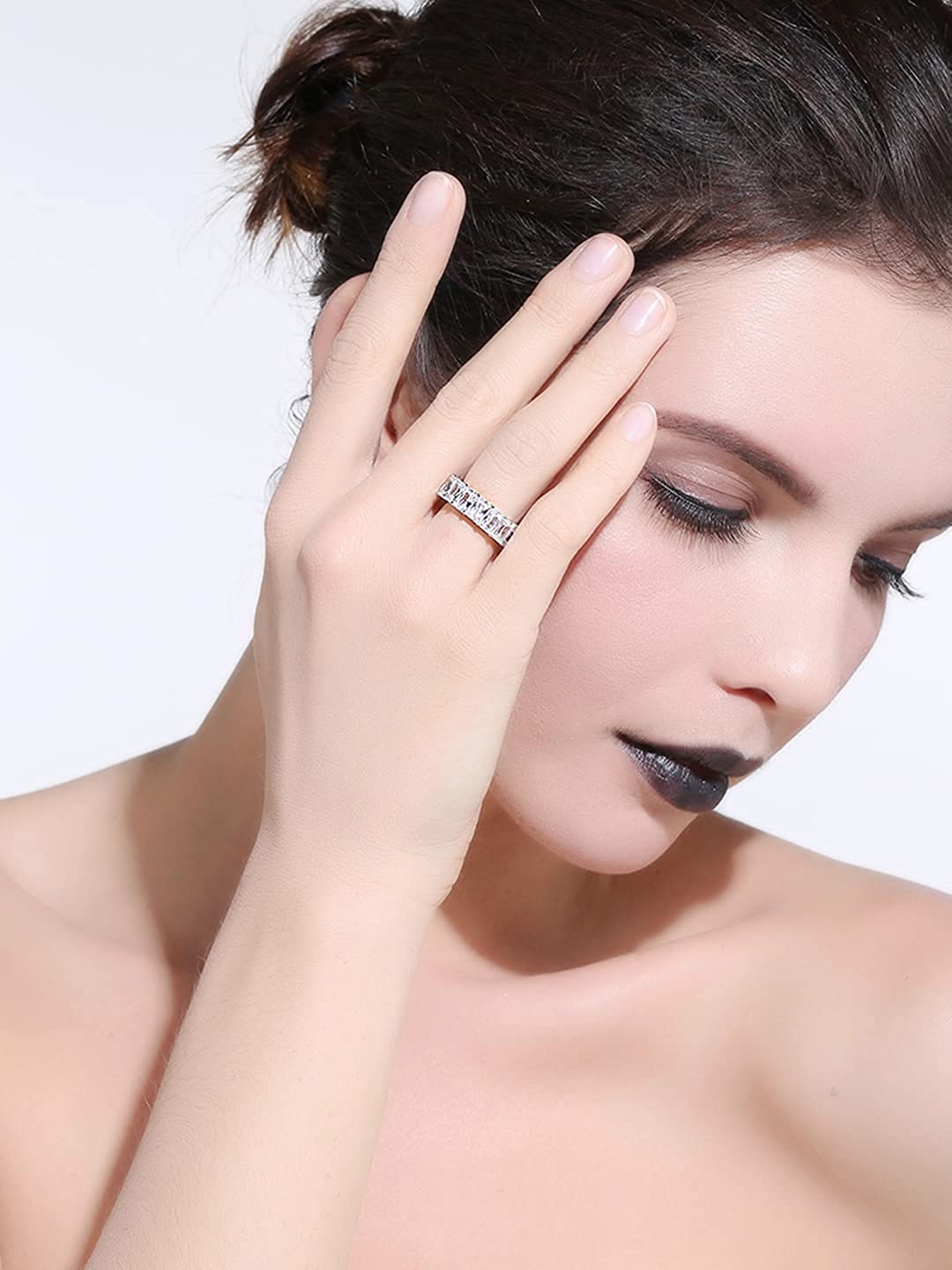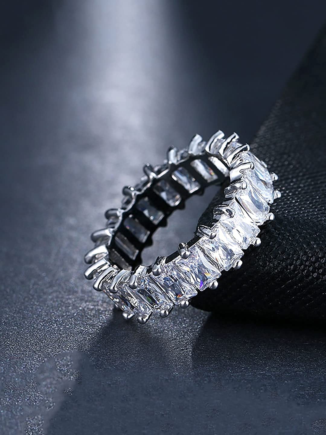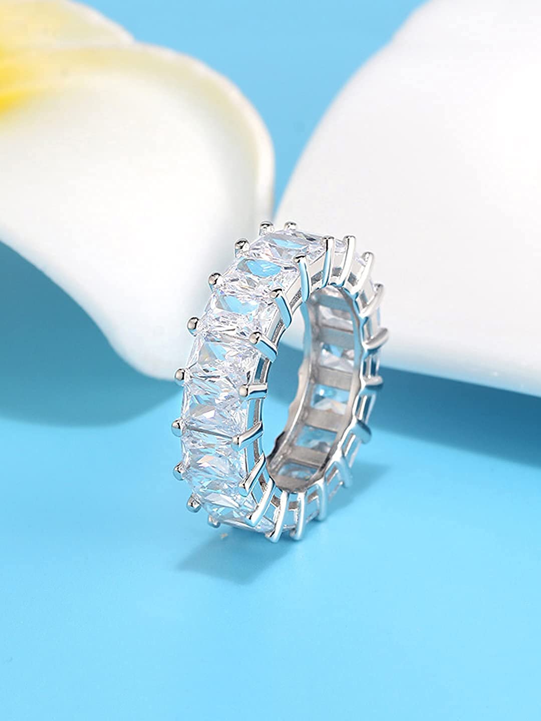 Rings for Women White Crystal Rings Silver Plated Eternity Crystal Band Rings for Women and Girls(Size US 8)