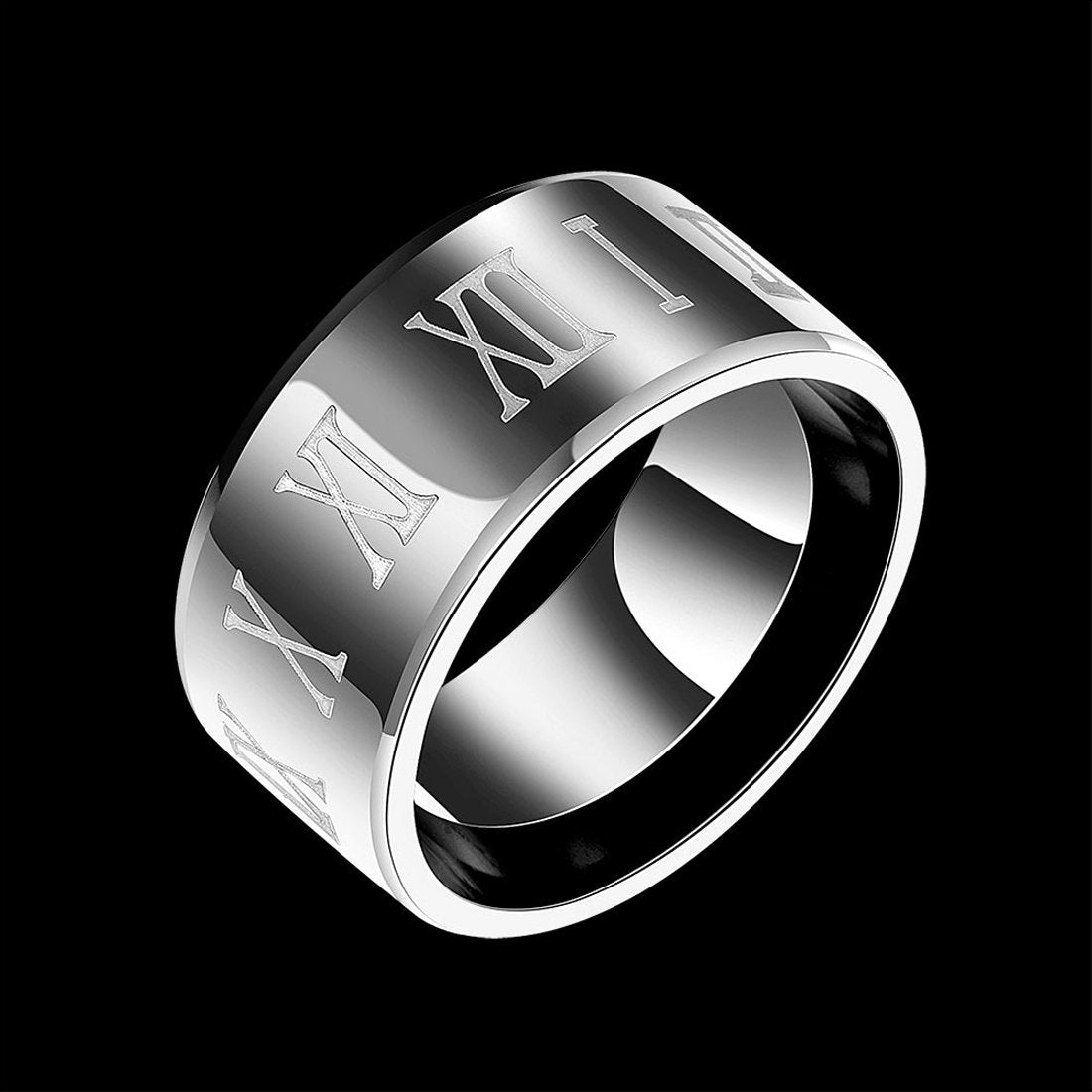 Roman Numerals Engraved Finger-Thumb Stainless Steel Ring for Men and Boys