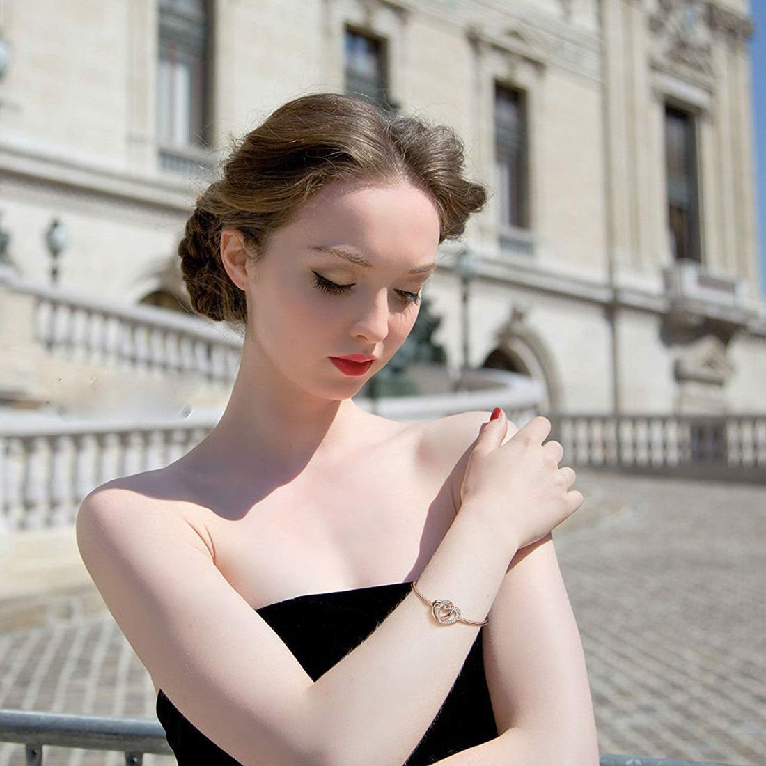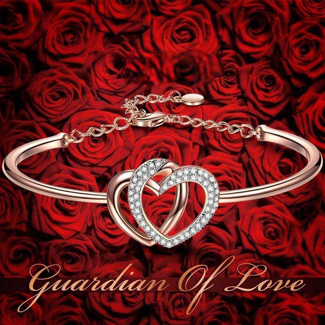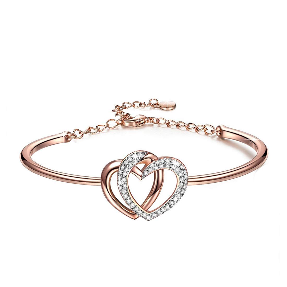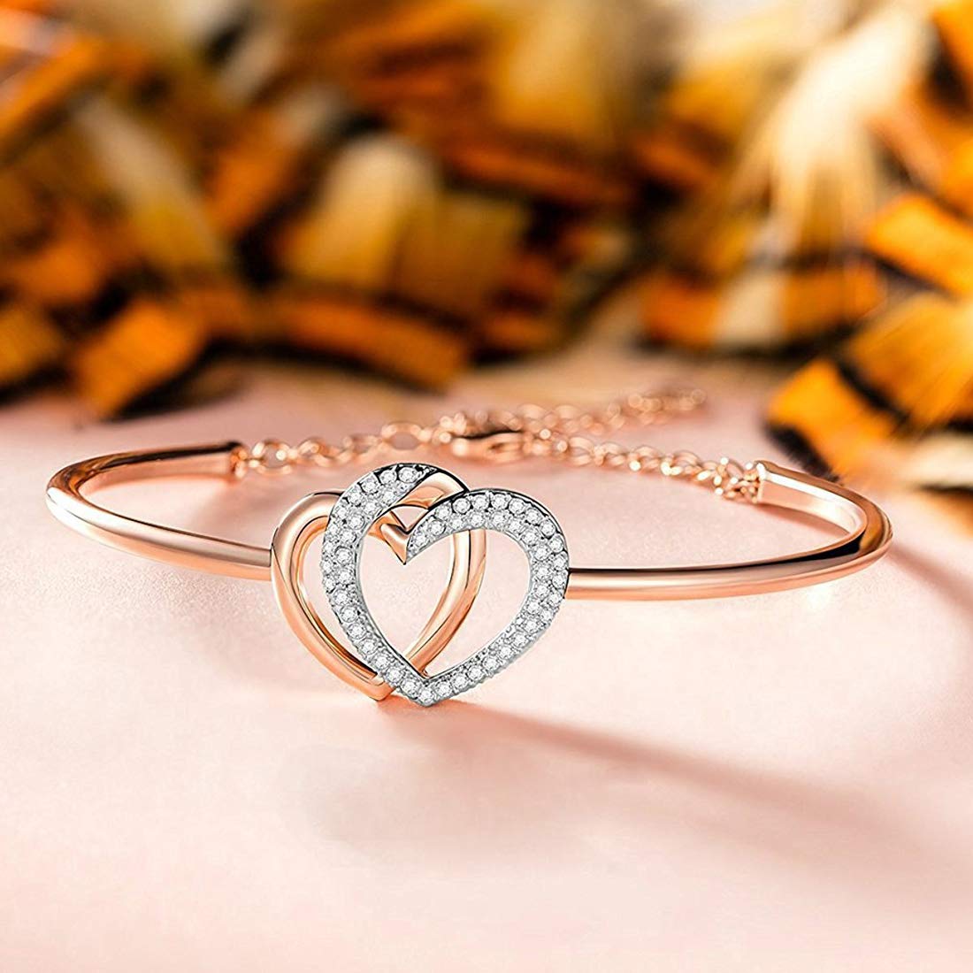 Rose Gold Twin Heart with Crystals Bangle Bracelet for Women and Girls