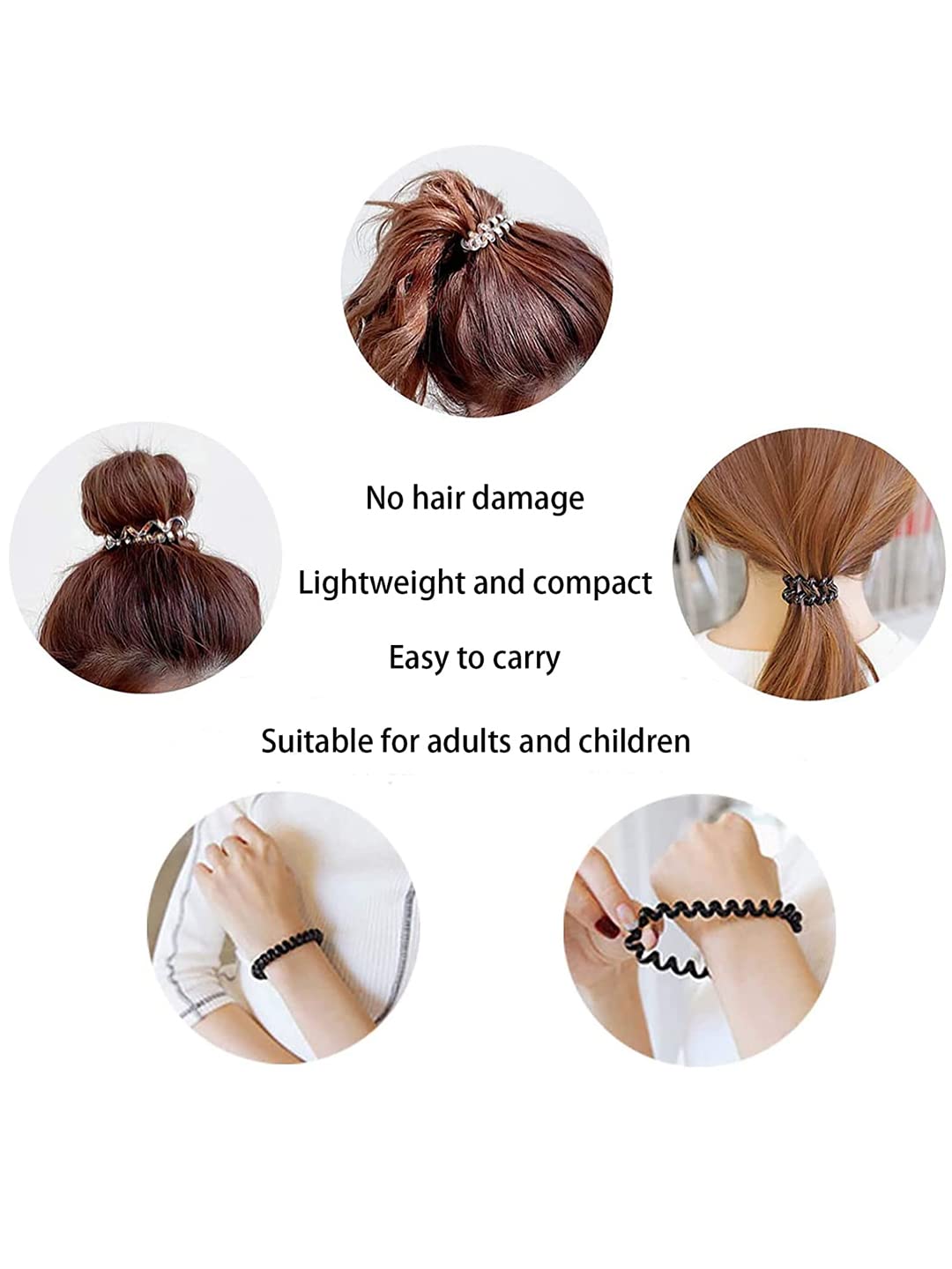 - No Marks, No Breakage: Say goodbye to headaches and hair damage! Our spiral hair rubber bands distribute pressure evenly, ensuring your hair remains intact and healthy.