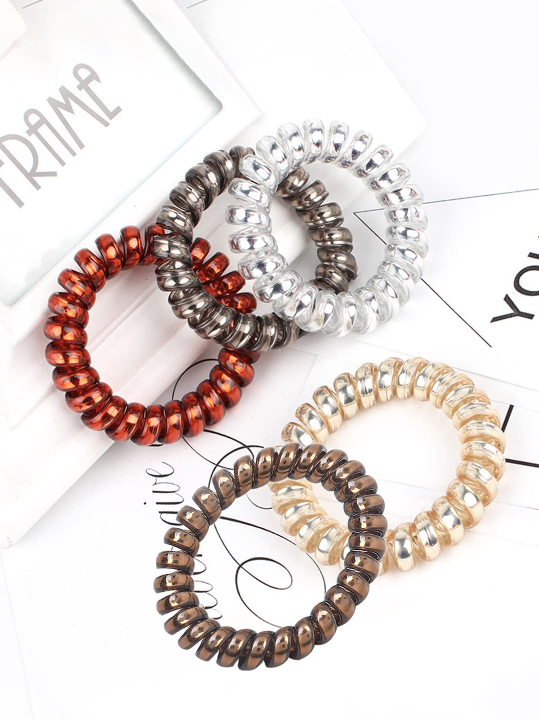 Yellow Chimes Rubber Bands for Women Hair Accessories for Women Hair Rubber Band 5 Pcs Multicolor Spiral Elastic Hair Rubber Bands for Women Hair Ties Ponytail Holders with Storage Box Gift For Women and Grils