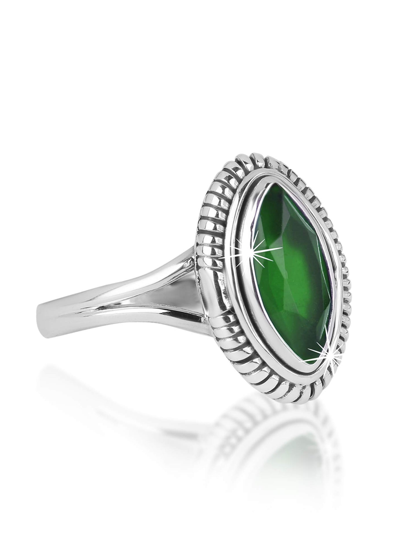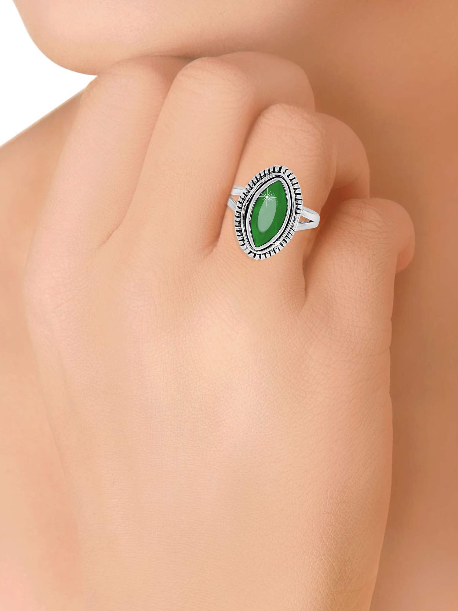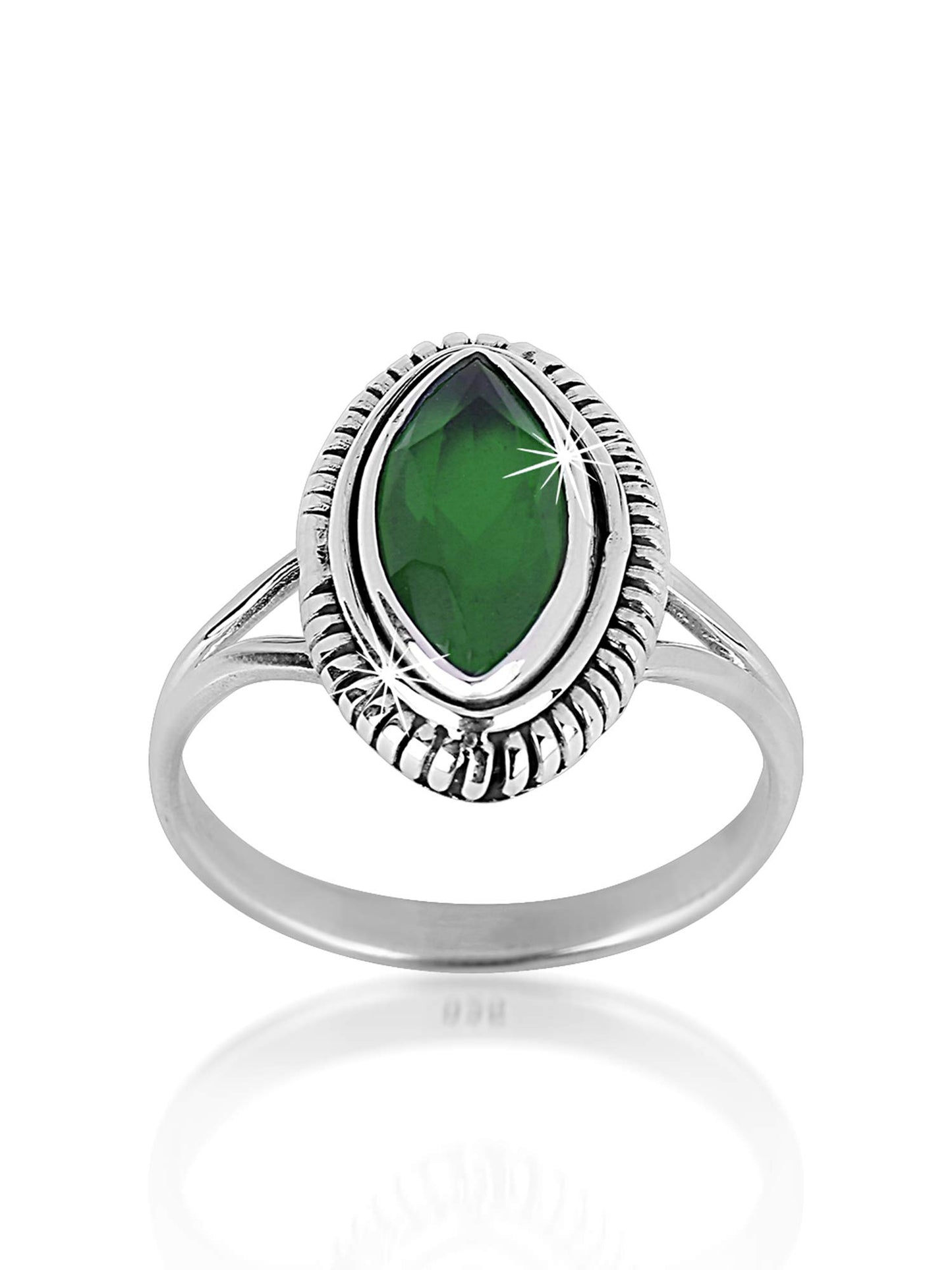 Yellow Chimes Emerald Quartz Gemstone 925 Sterling Silver Hallmark and Certified Purity Finger Ring Earrings for Women and Girls Pure 92.5 Sterling Silver Ring with 925 Authenticity Stamp and Authenticity Card. It is NOT Silver Plated. It is REAL SILVER. Real Silver in Oxidized form is used for Plating for Royal Culture Looks and tarnish protection. Oxidized Looks is an uncomparable Evergreen Fashion, originated from Royals in History. Nickel free and lead free as per International Standards. Anti-allergic and very safe for skin. Size- US 7. Markas charm Width- 2 CM Exquisite Gifting Jewellery Box with Authenticity Card- Shipped in an Special Sparkling complimentary Jewellery box. Ideal Gift for Women on All occasions. See an Un-ending Sparkle in the eyes of your Loved Ones! Light weight, Elegant and Versatile design - Suitable for Formal Wear / Party Wear/ Daily Wear. Can be Well teamed with Ethnic, Western or Business- any Outfits.