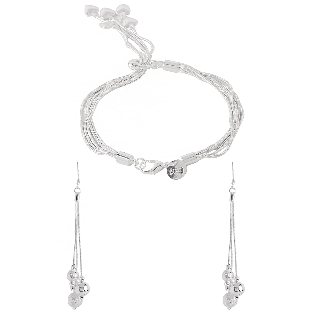 Elevate Your Style with the Yellow Chimes Silver Earrings and Bracelet Set
