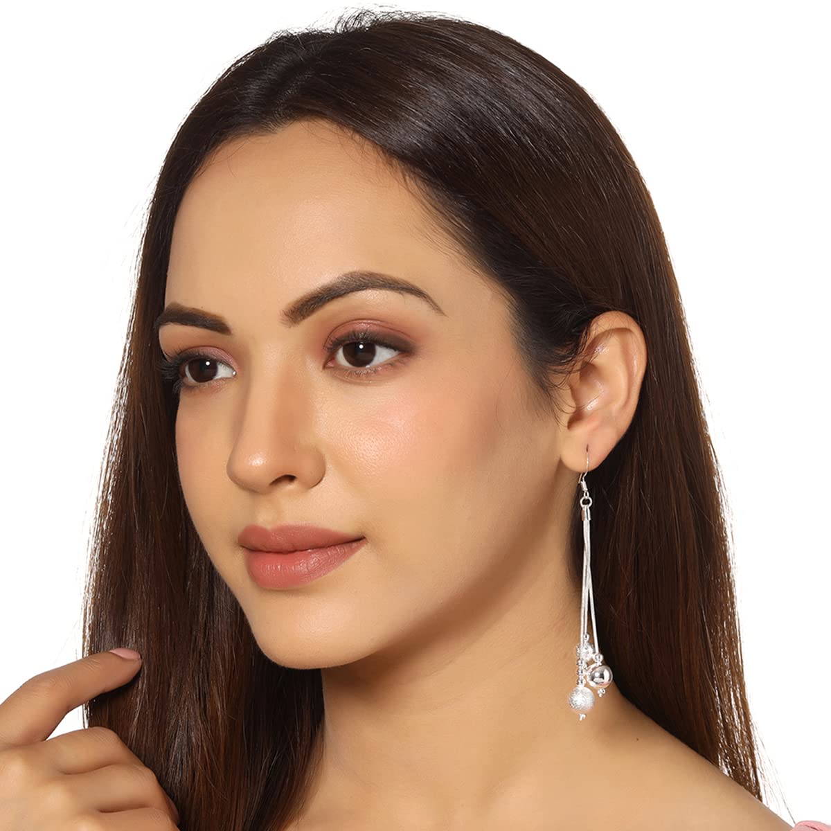 Unleash your inner fashionista with the Yellow Chimes Silver Earrings and Bracelet Set, a stunning combination designed for women and girls who love to shine. This exceptional set features:
