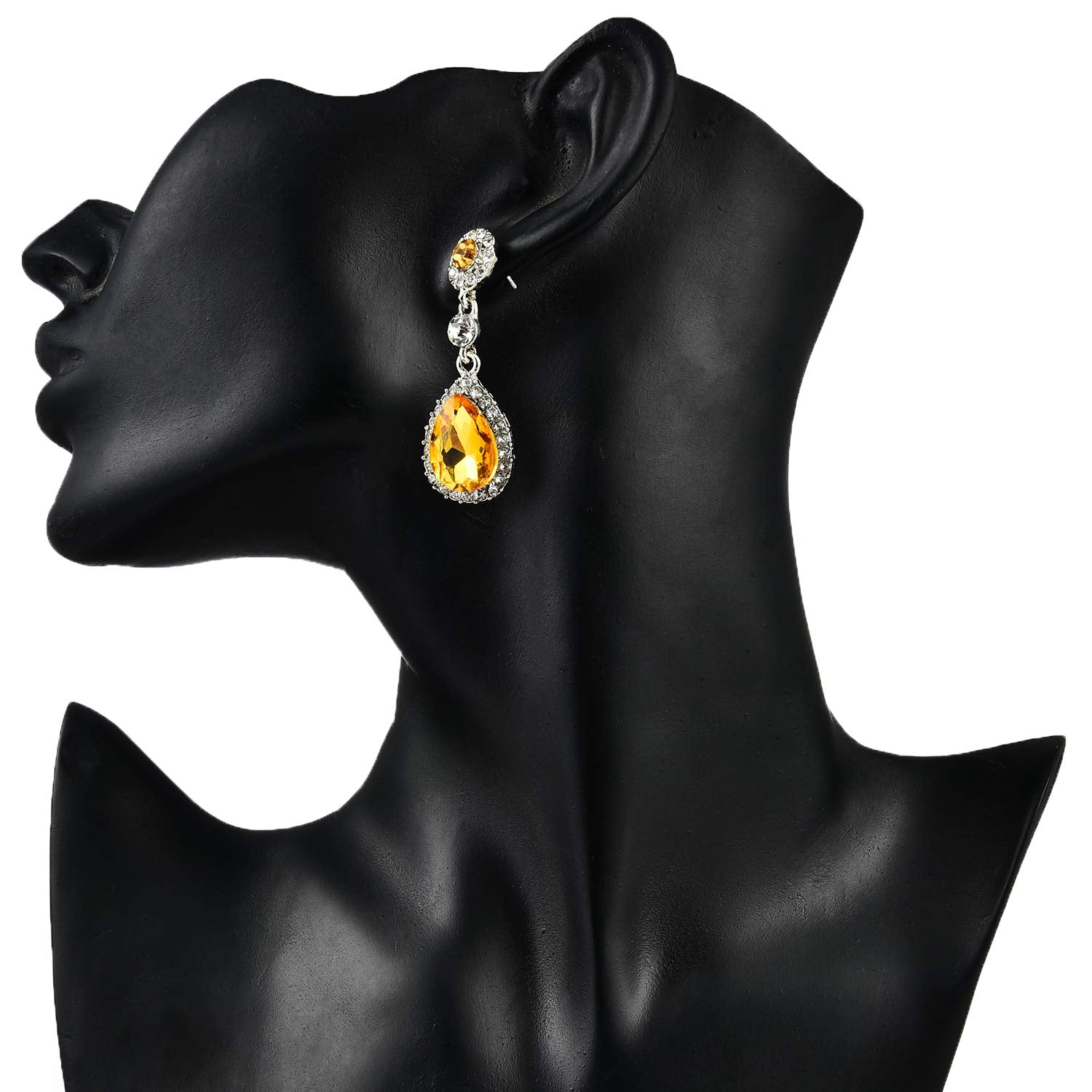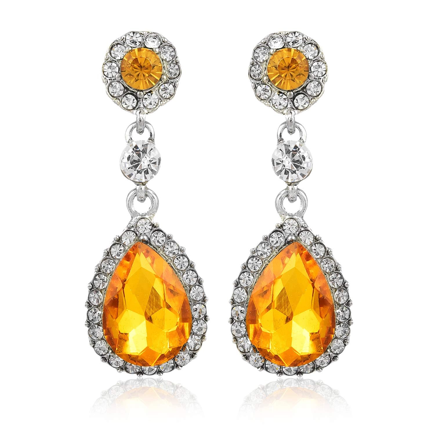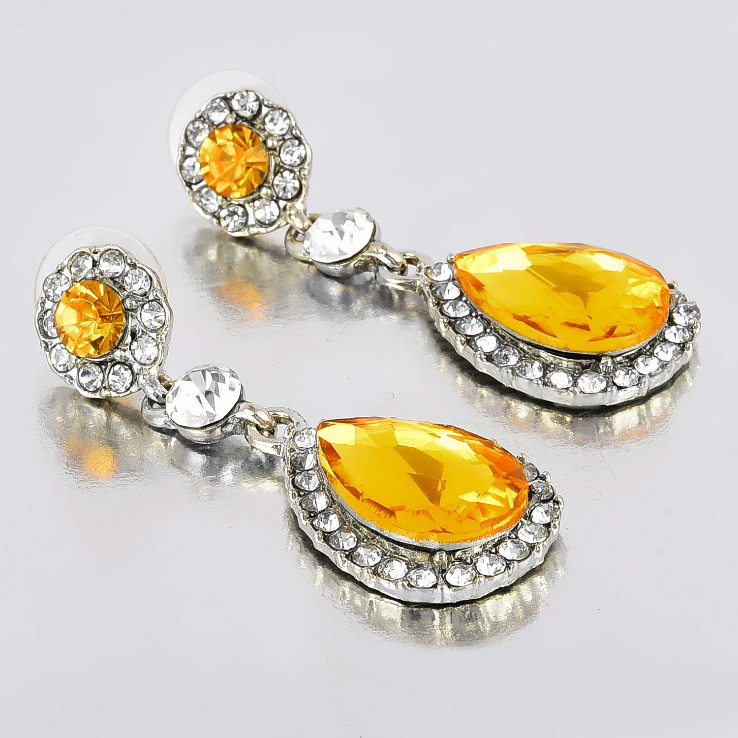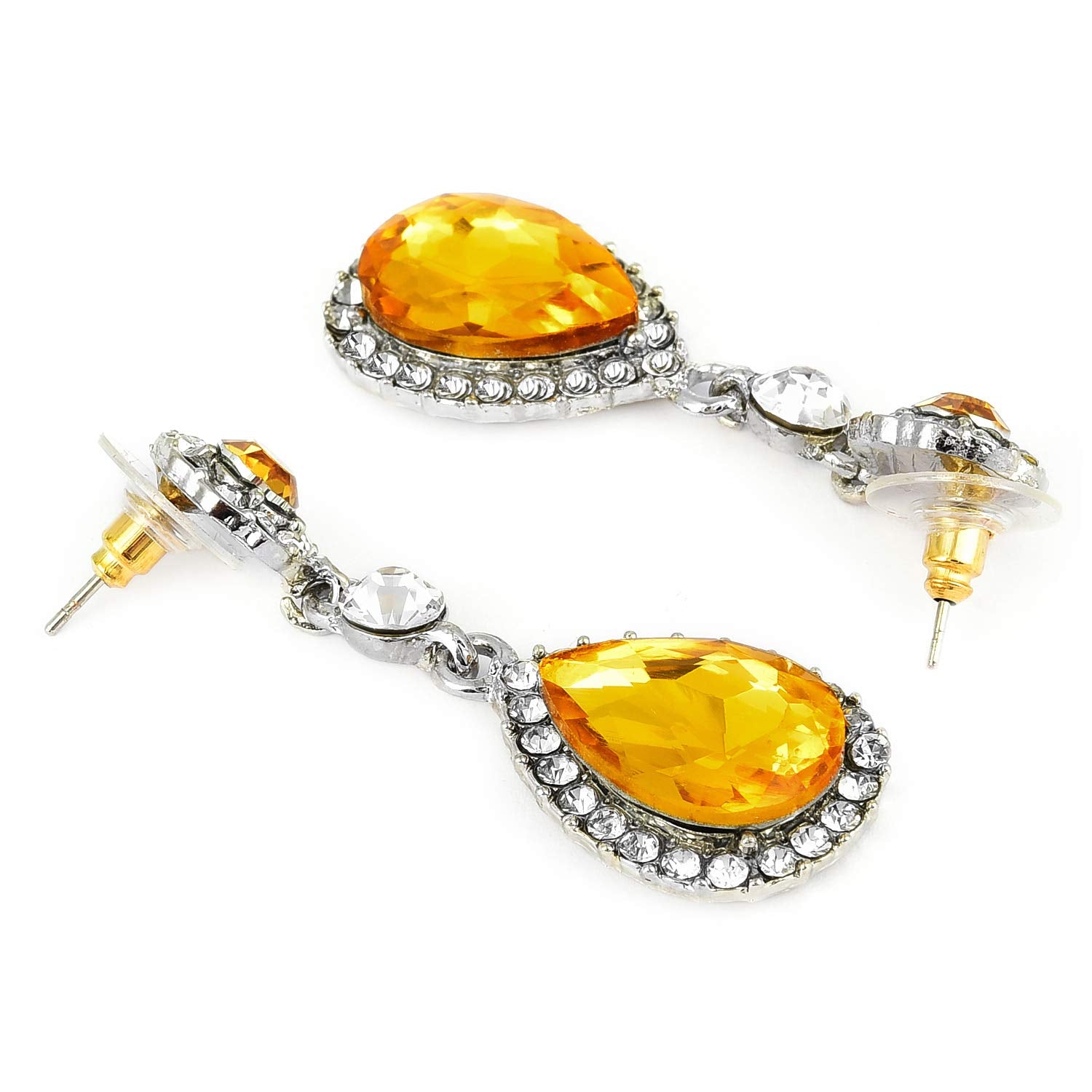 Silver Plated Yellow Crystal Drops Earrings for Women and Girls