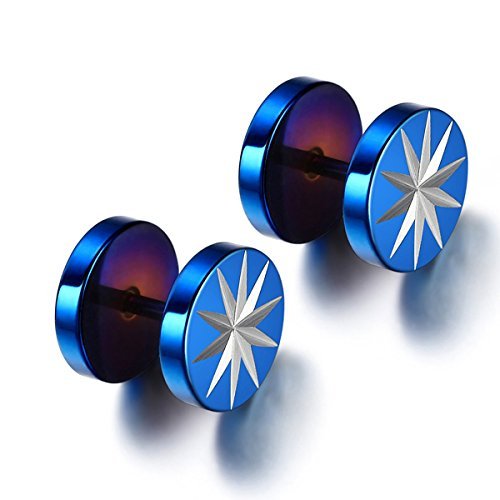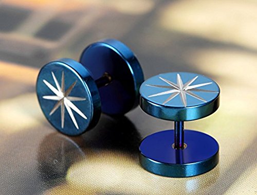 Spark Symbol 316L Stainless Steel Metallic Blue Earrings for Men and Boys