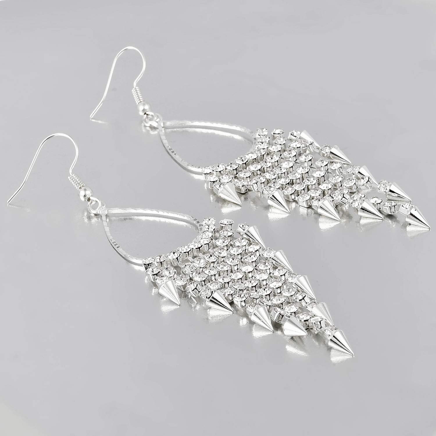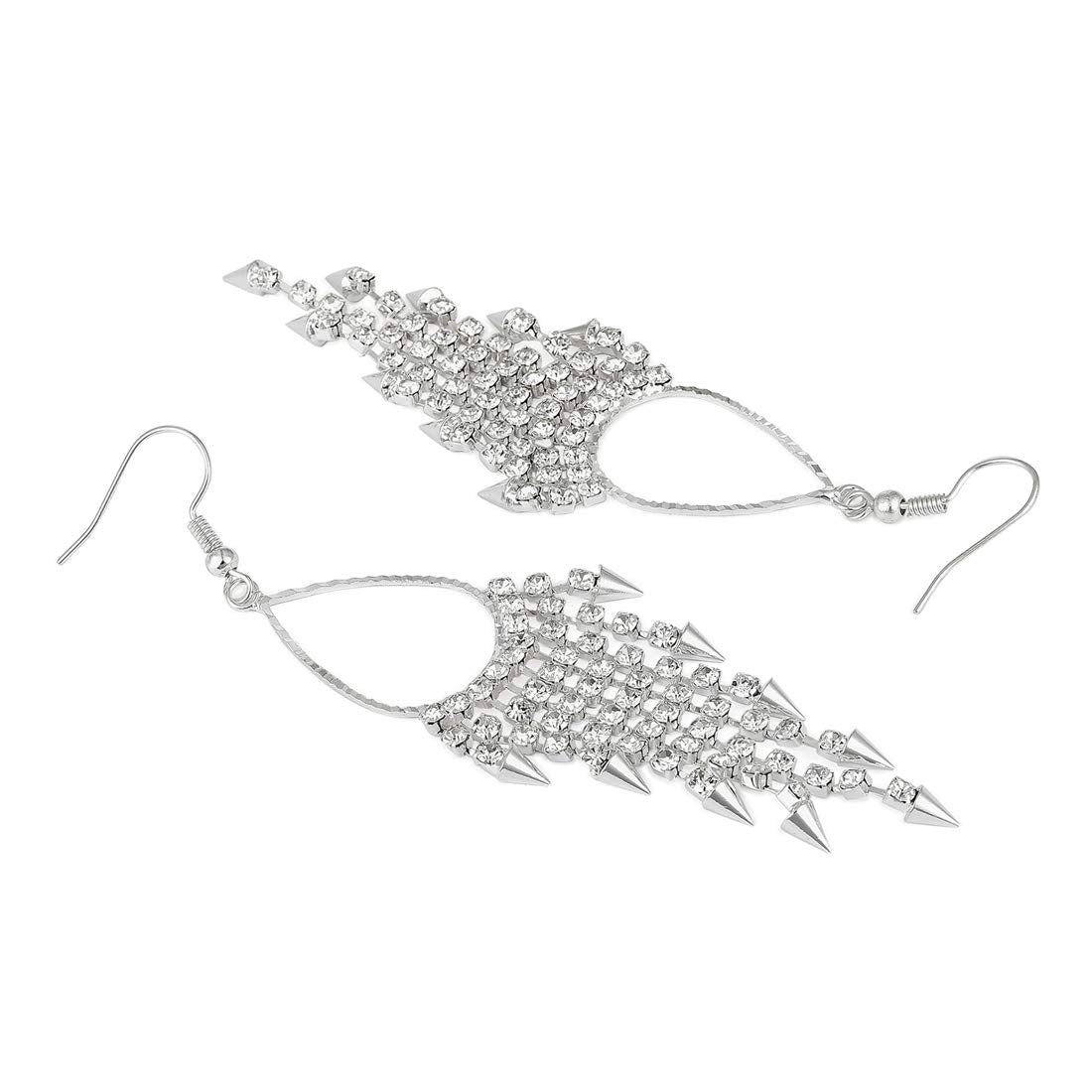 Yellow Chimes Sparkling Beauty Silver Chandelier Earring for Women & Girls.