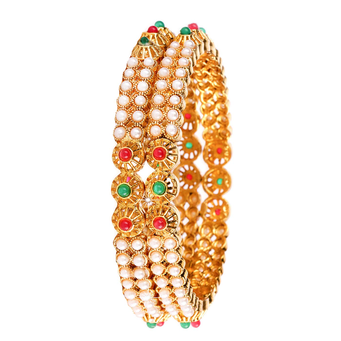 Yellow Chimes Stone Work Moti Craftmanship Copper Gold Plated 2 Pc Bangles Traditional Bangle Set for Women and Girls (2.6)