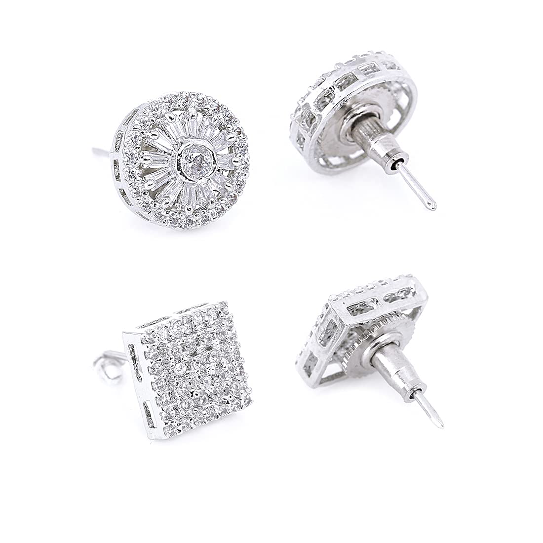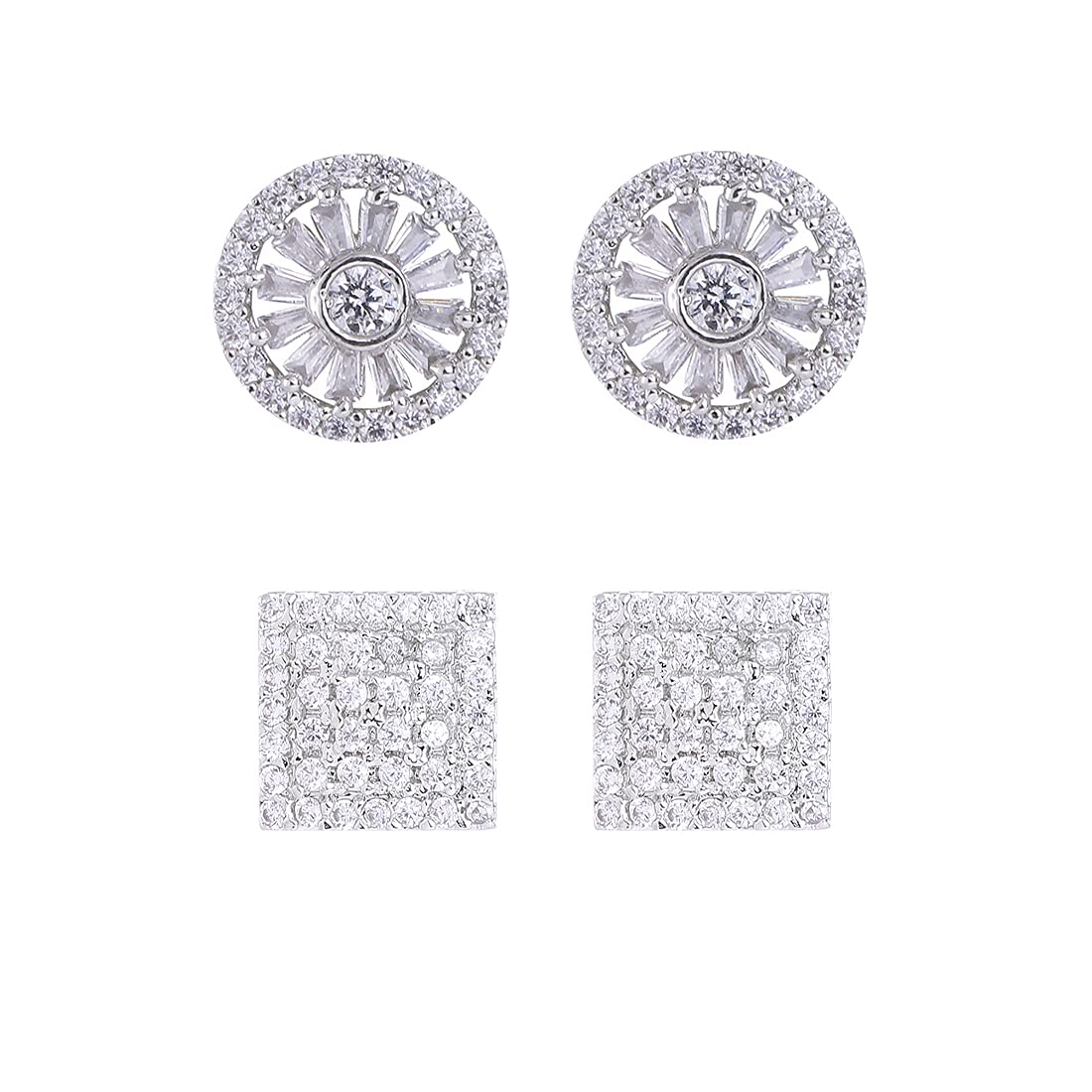 Stud Earrings for Women AD/American Diamond Earrings Rhodium Plated Combo of 2 Pairs white Stud Earrings for Women and Girls