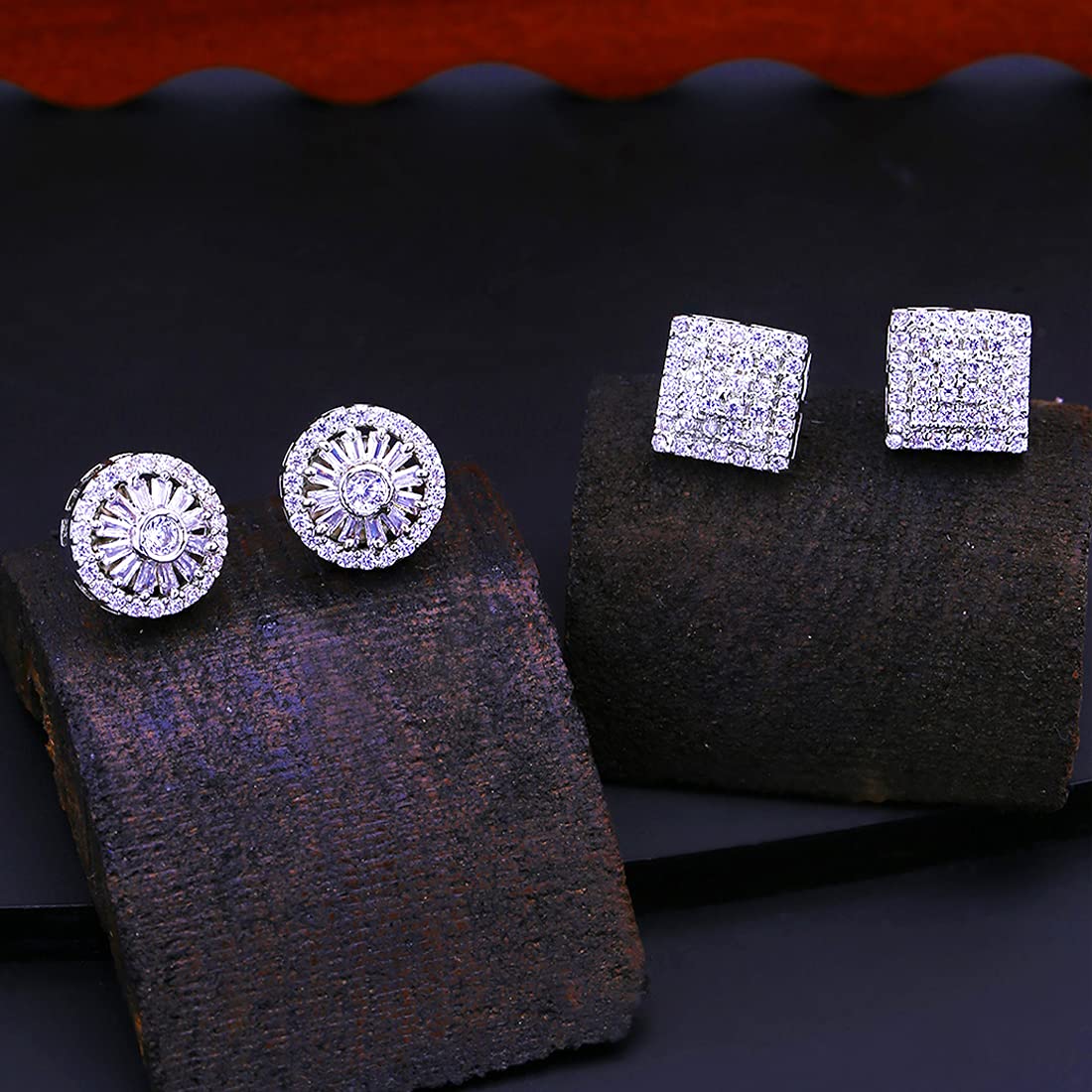 - Sparkling Luxurious Looks High Grade AD Stones in White shade Stud Earrings.Produced under Quality Control; One by One Checking; Focus on Detail Processing. Top Quality/ Latest Trend Design/Anti-Allergy .