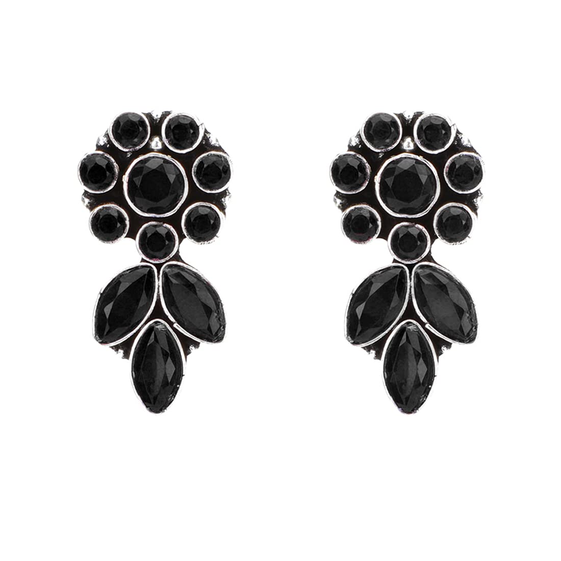 Stud Earrings for Women Ethnic Silver Oxidised Earrings Black Floral & Leaf Traditional Stud Earrings for Women And Girls.