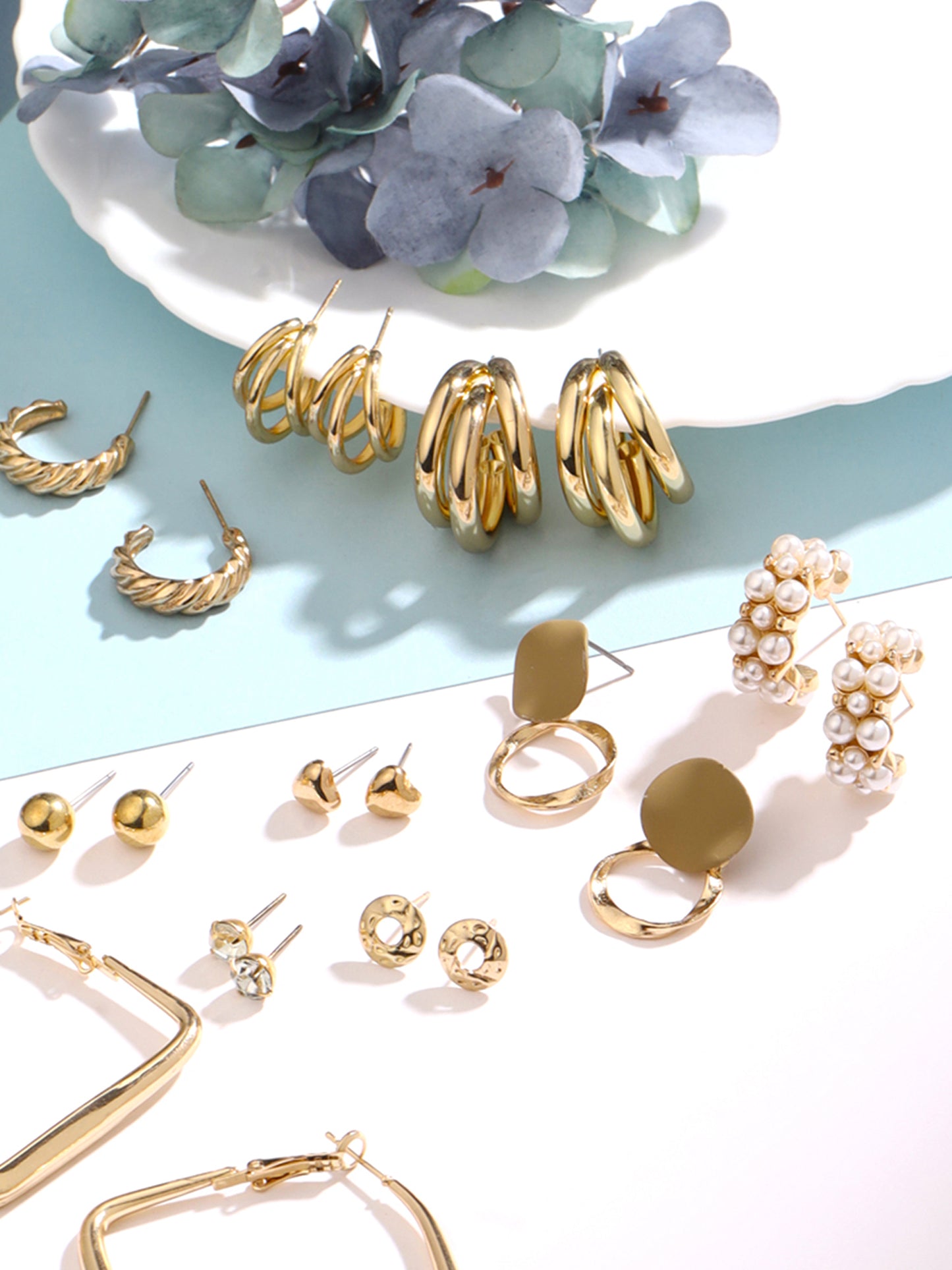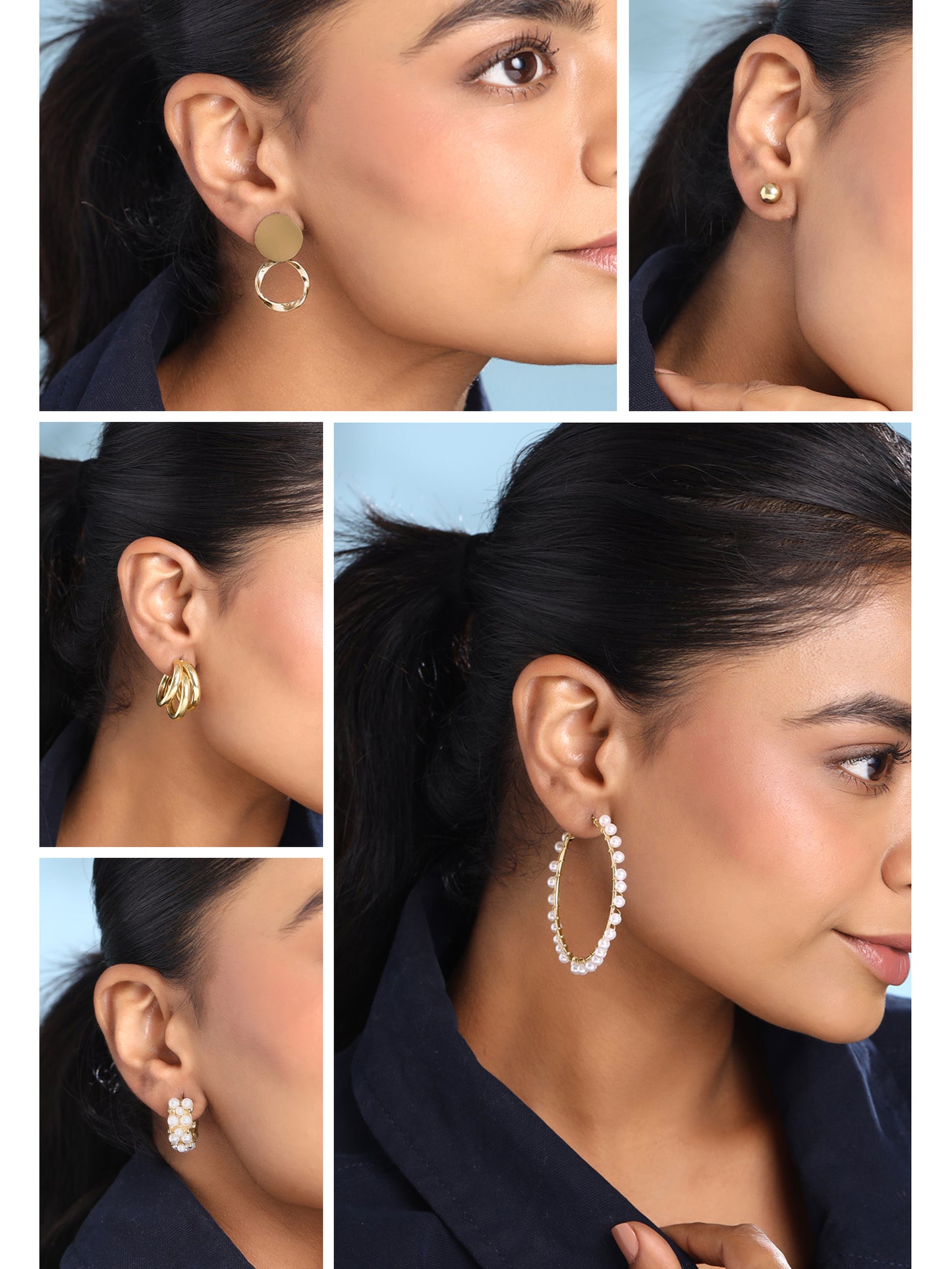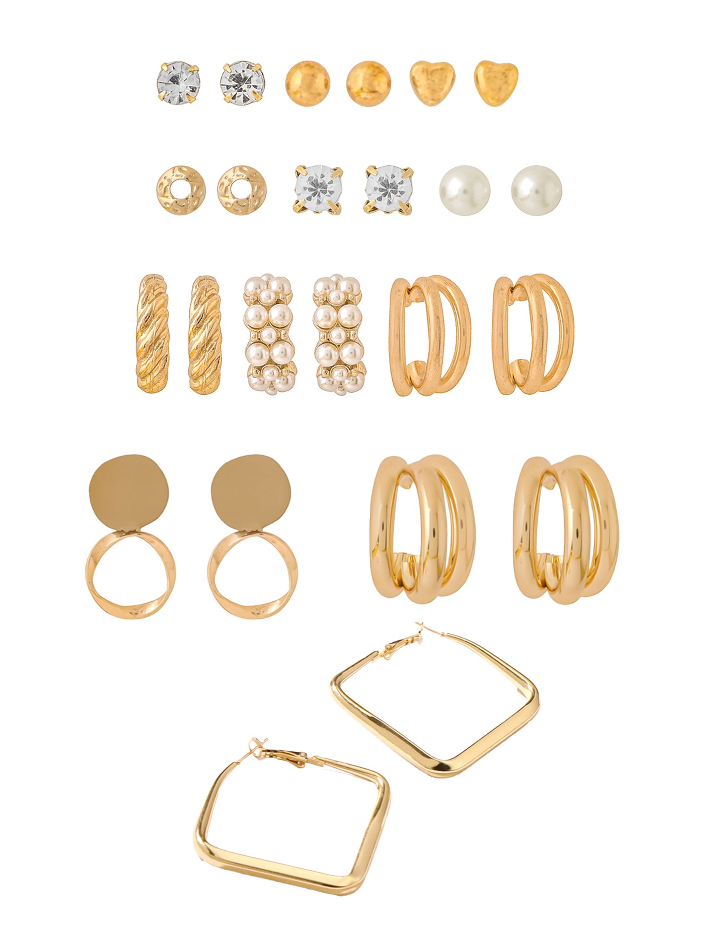- COMBO SET FOR VERSATILITY: This set of 12 pairs of Earrings offers a variety of styles for different occasions. From Stud & Hoops to Gold Toned pearls Studded designs, this combo set has something for everyone. Ideal for gifting to mothers, friends, and wives, these earrings are perfect for adding a touch of elegance to any outfit.