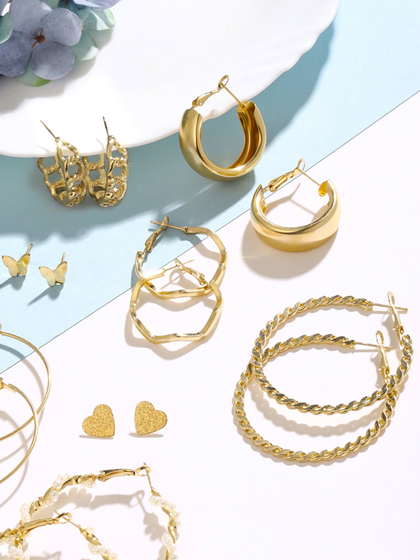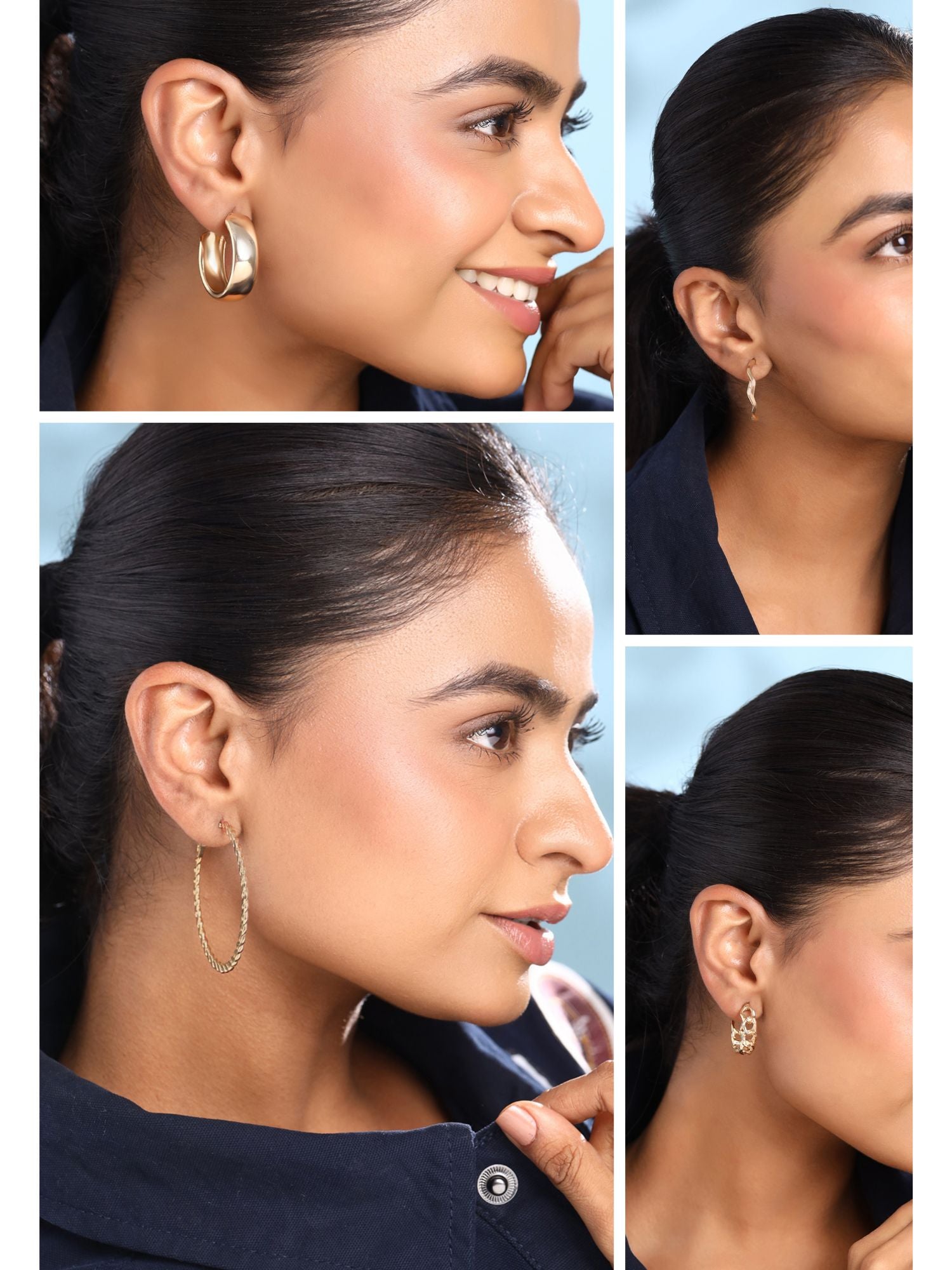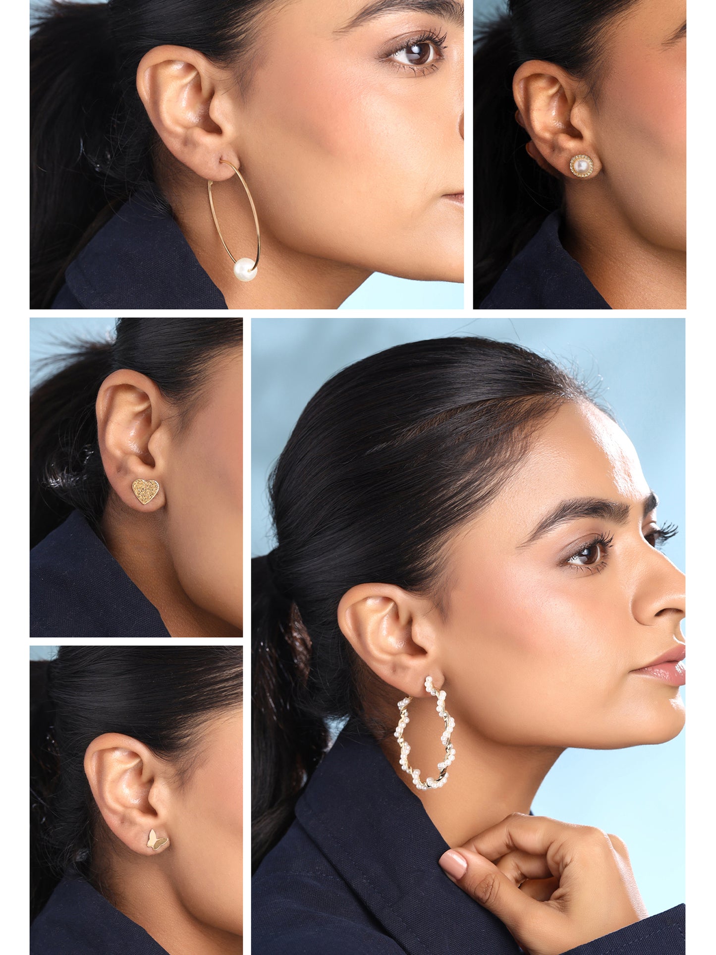 - COMBO SET FOR VERSATILITY: This set of 9 pairs of Earrings offers a variety of styles for different occasions. From Stud & Hoops to Gold Toned pearls Studded designs, this combo set has something for everyone. Ideal for gifting to mothers, friends, and wives, these earrings are perfect for adding a touch of elegance to any outfit.